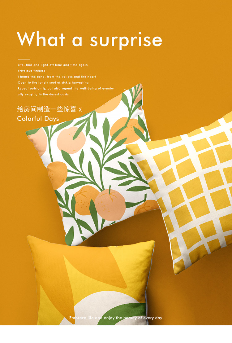 黄色简约抱枕靠垫小清新田园抱枕美式靠枕客厅沙发飘窗靠背样板房