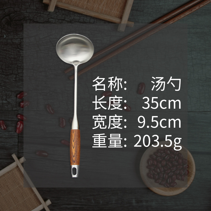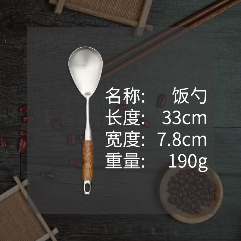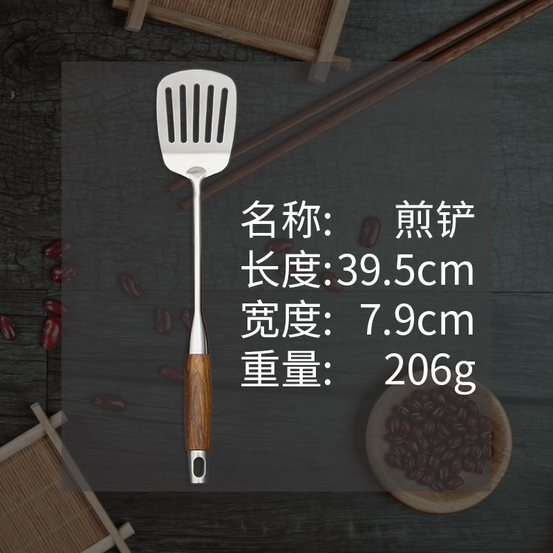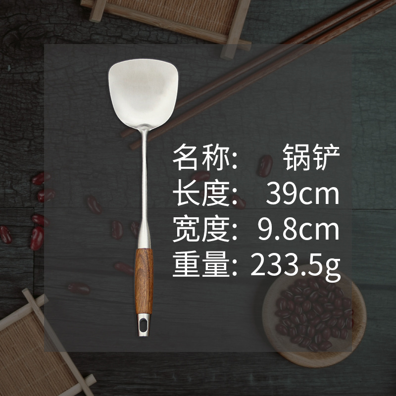201不锈钢厨具套装 家庭烹饪用具6件套砂光花梨木炒菜锅铲子批发