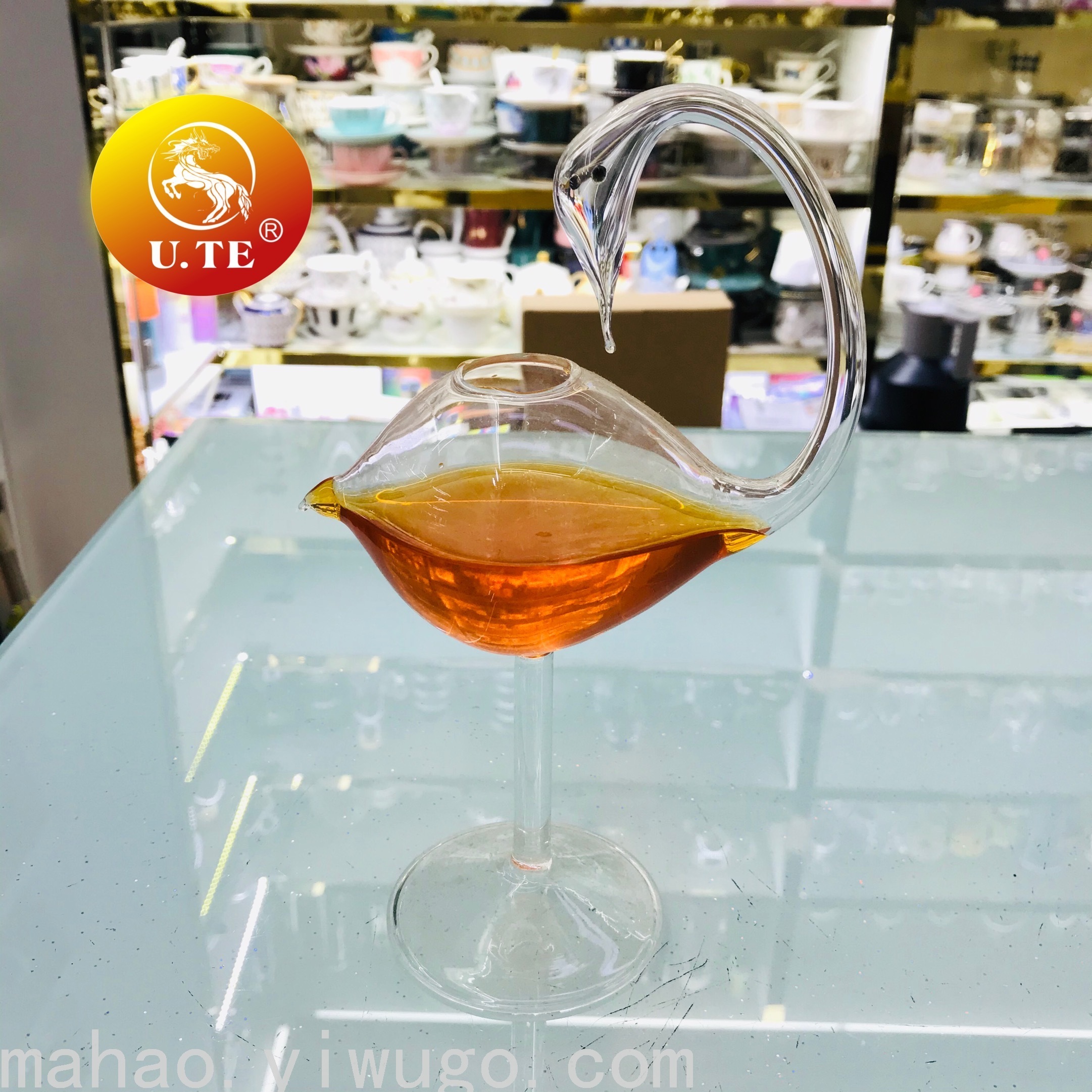 天鹅玻璃吸管杯
