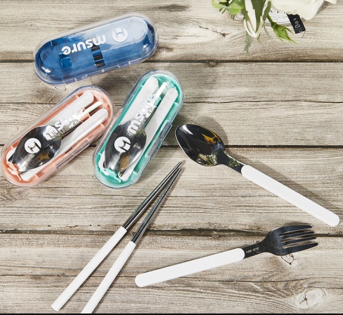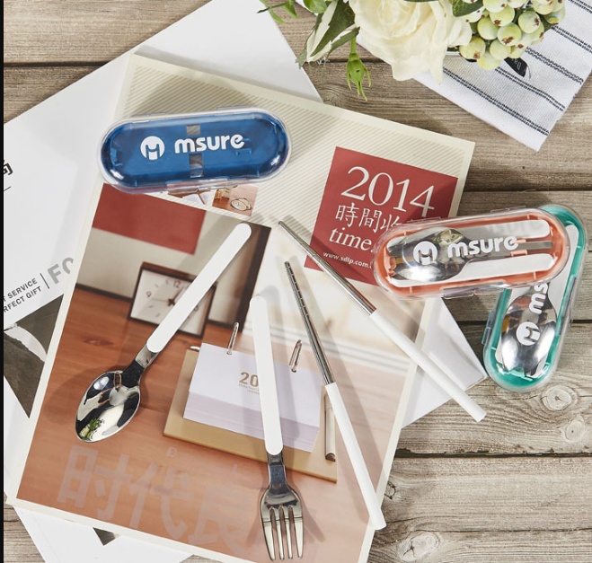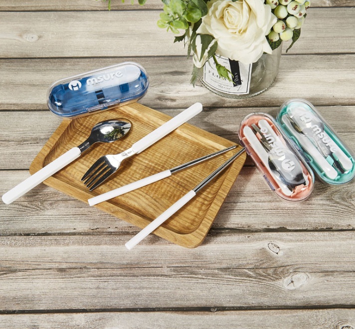 304不锈钢糖果色便携餐具套装叉勺筷三件套