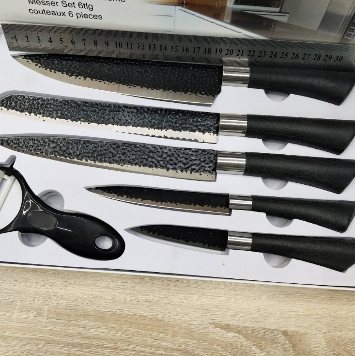 不锈钢菜刀厨房礼品套刀六件麦饭石不粘波纹套刀