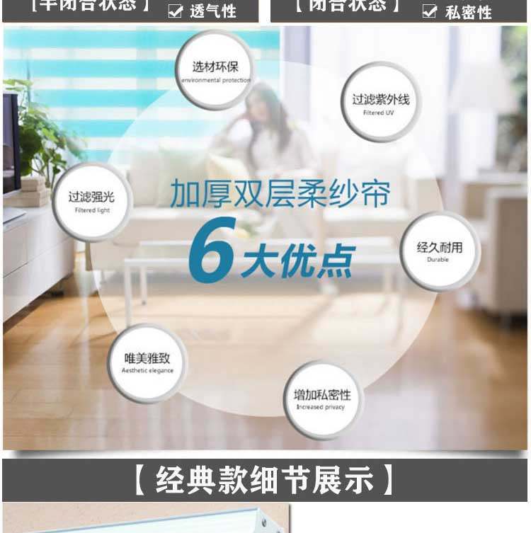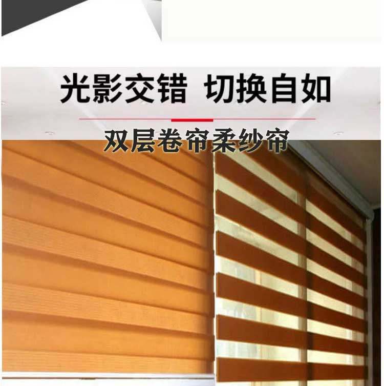 柔纱帘卷帘办公遮阳帘百叶窗帘双层遮光防水卷拉式防晒免打孔安装