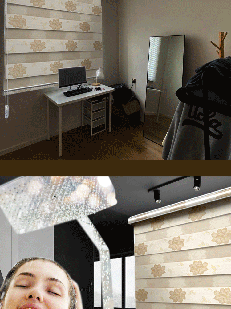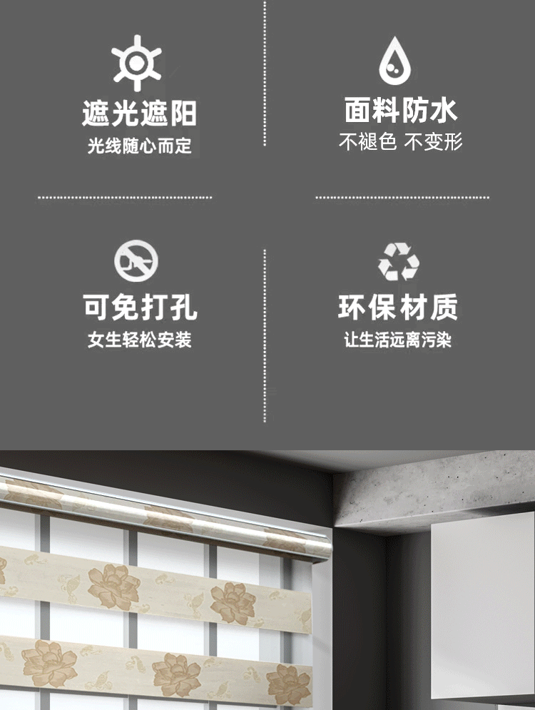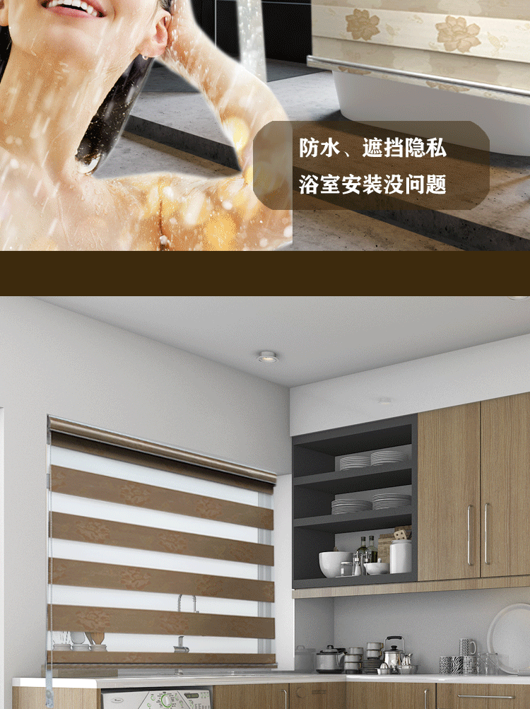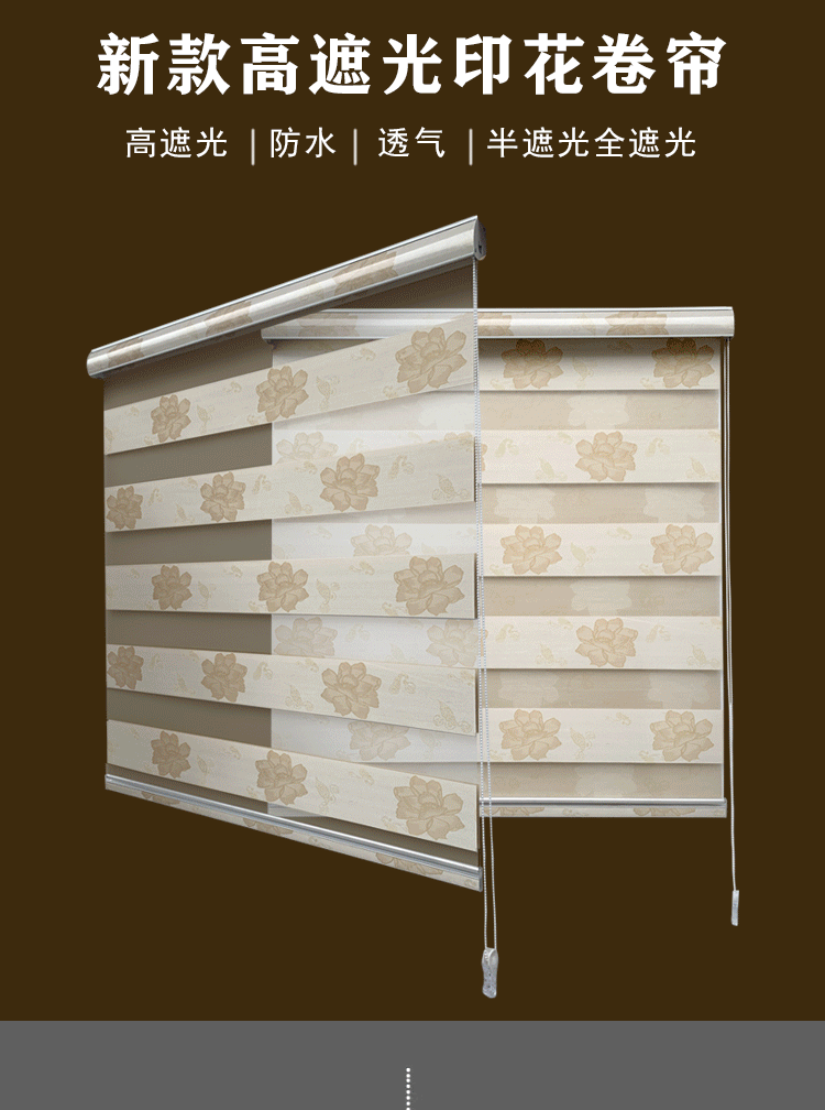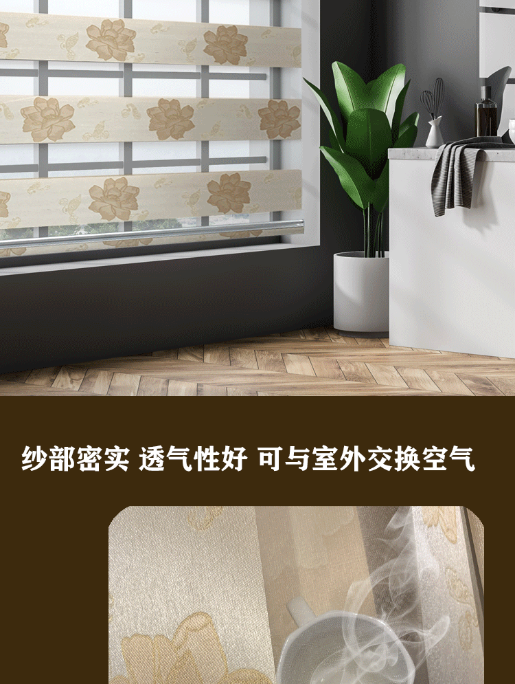 花色柔纱卷帘百叶窗帘加厚高遮光手拉升降卧室卫生间浴室书房电动