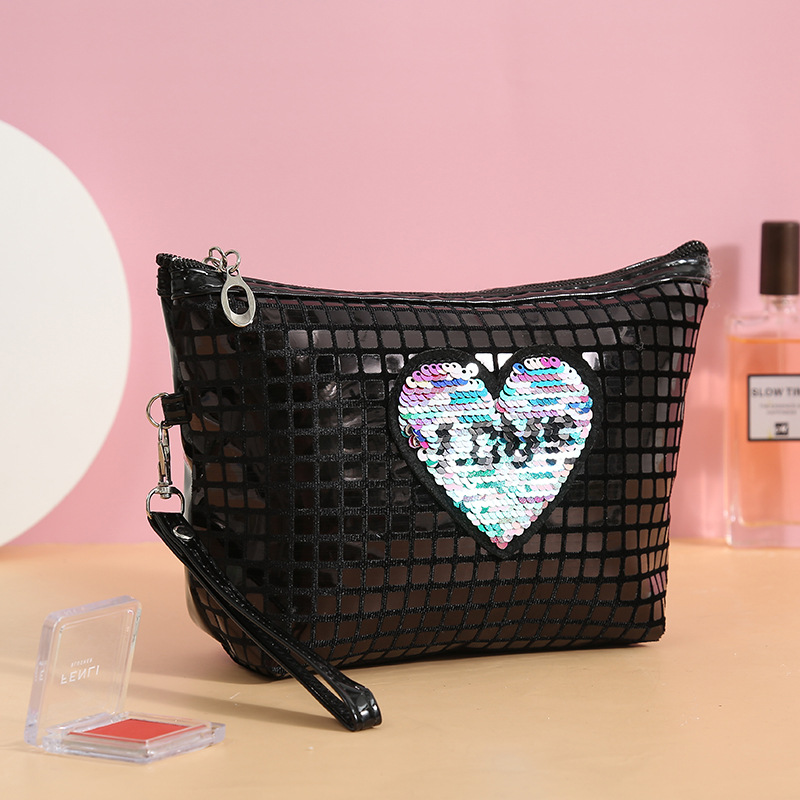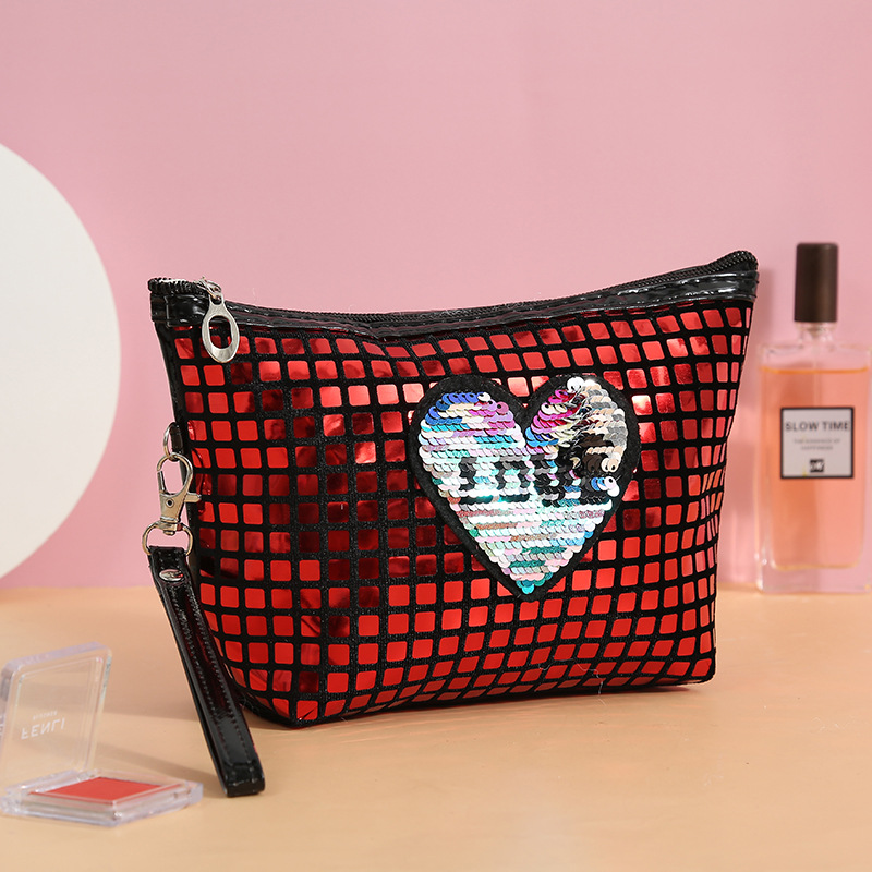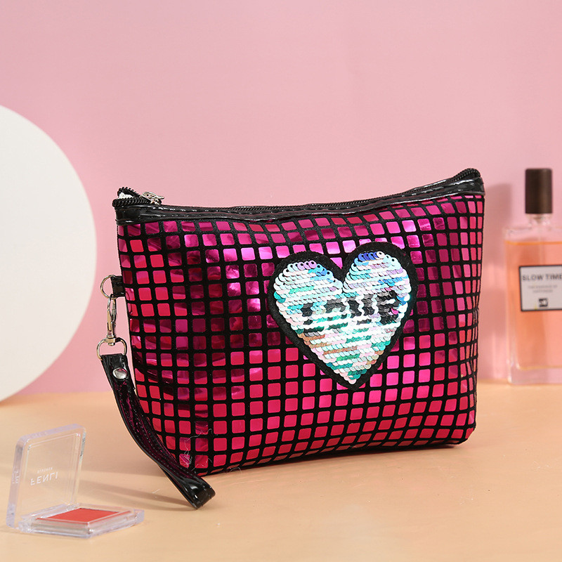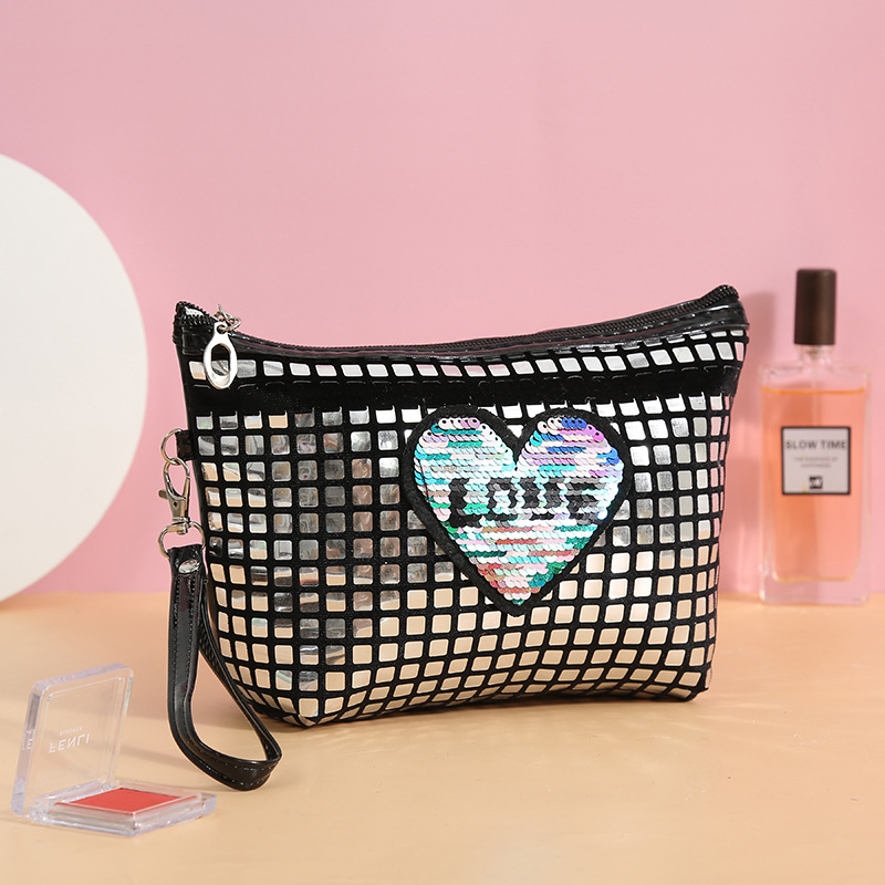 欧美格纹图案亮片化妆包随身PVC手提洗漱包拉链个性收纳包批发