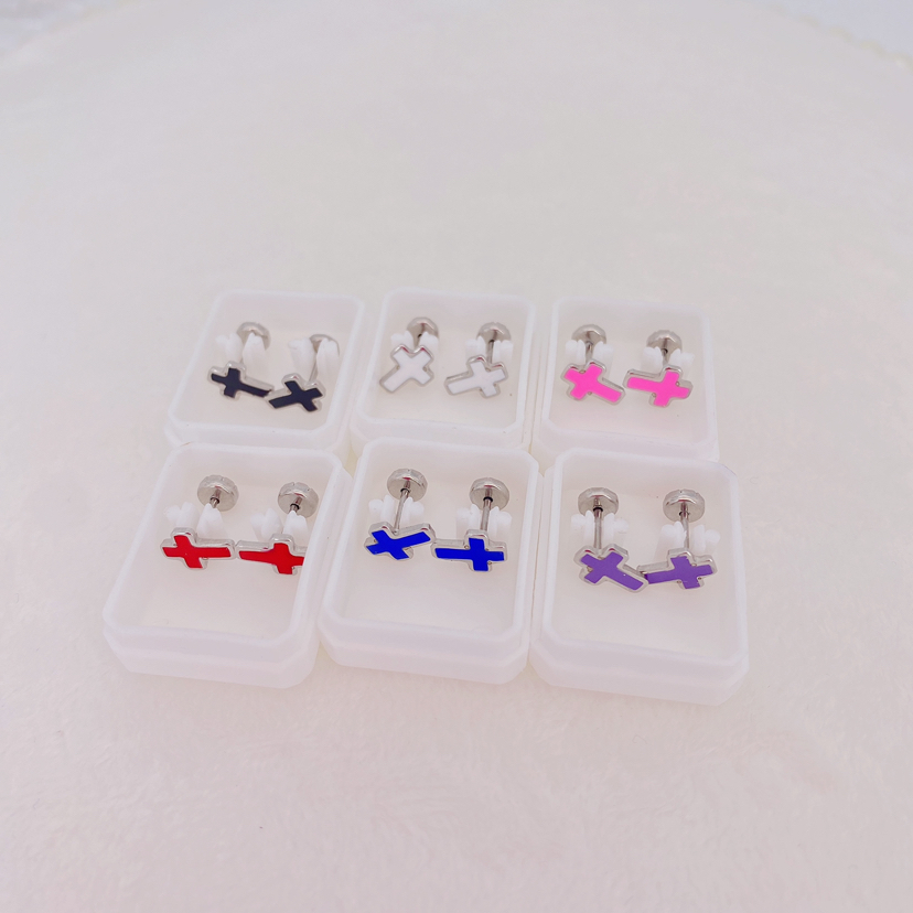 新款不锈钢饰品 彩色滴油不锈钢耳钉饰品 彩色滴油混色儿童耳钉