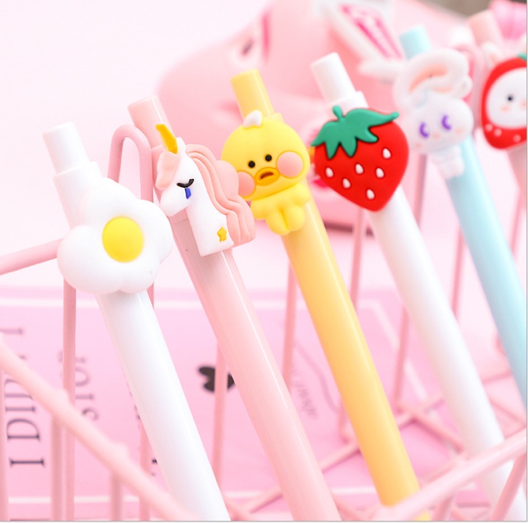 卡通中性笔0.5mm学生按动黑色签字笔