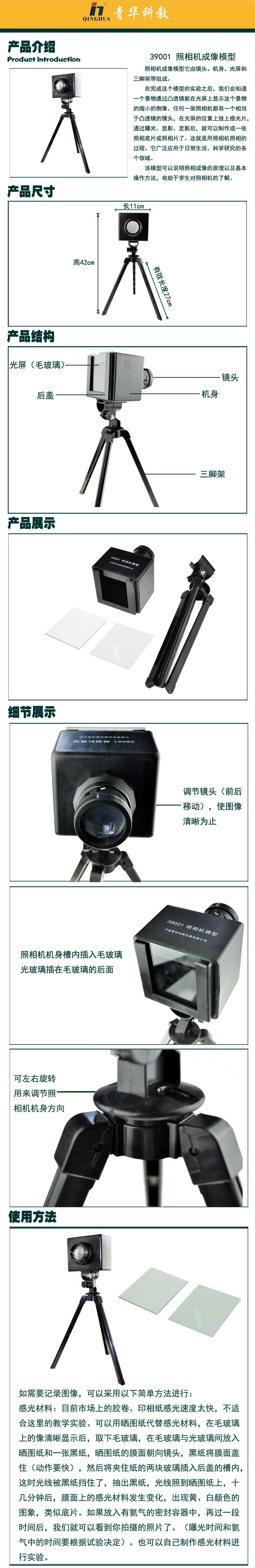 照相机模型 凸透镜成像实验小学科学 光学教学仪器物理学