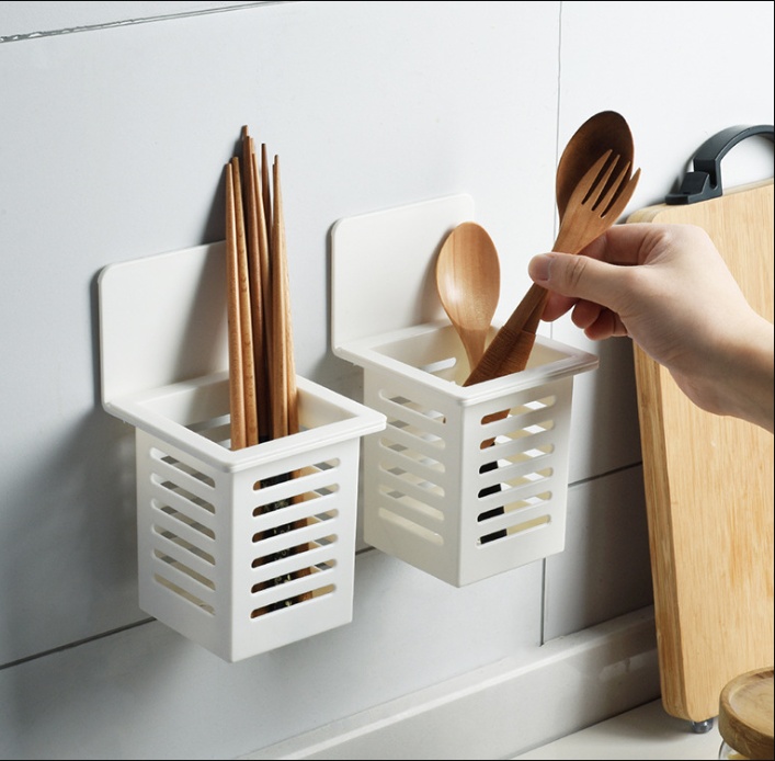 创意厨房勺子筷子架塑料沥水免打孔壁挂式筷子筒