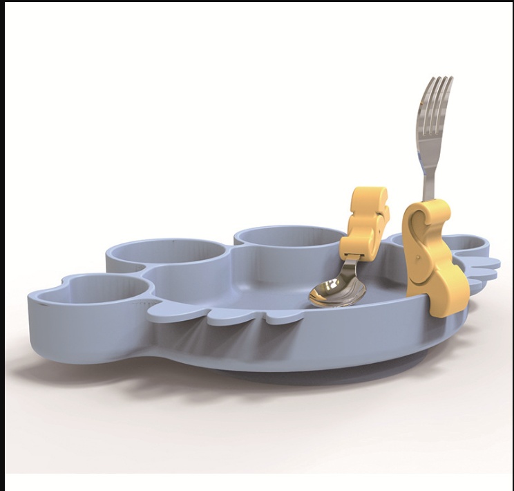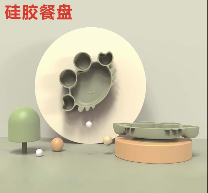 宝宝硅胶餐盘大容量螃蟹分格餐盘