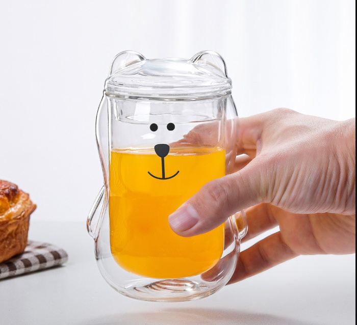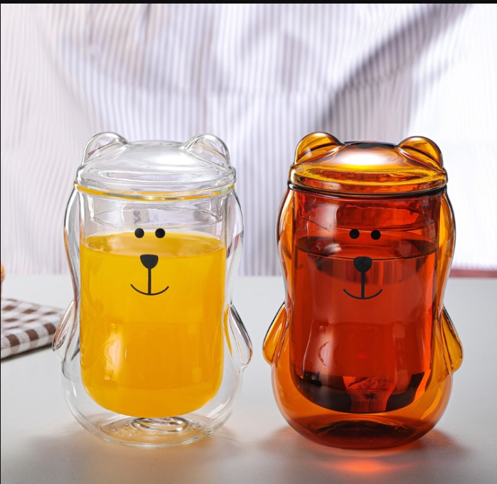 创意可爱卡通双层玻璃杯耐热双层咖啡杯果汁牛奶杯