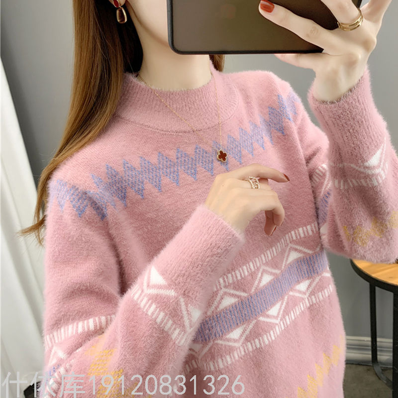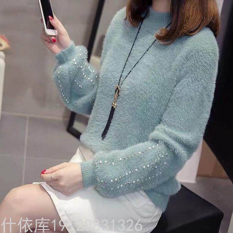 2023秋冬女装水貂绒毛衣外贸休闲保暖女装针织毛衣库存尾货批发