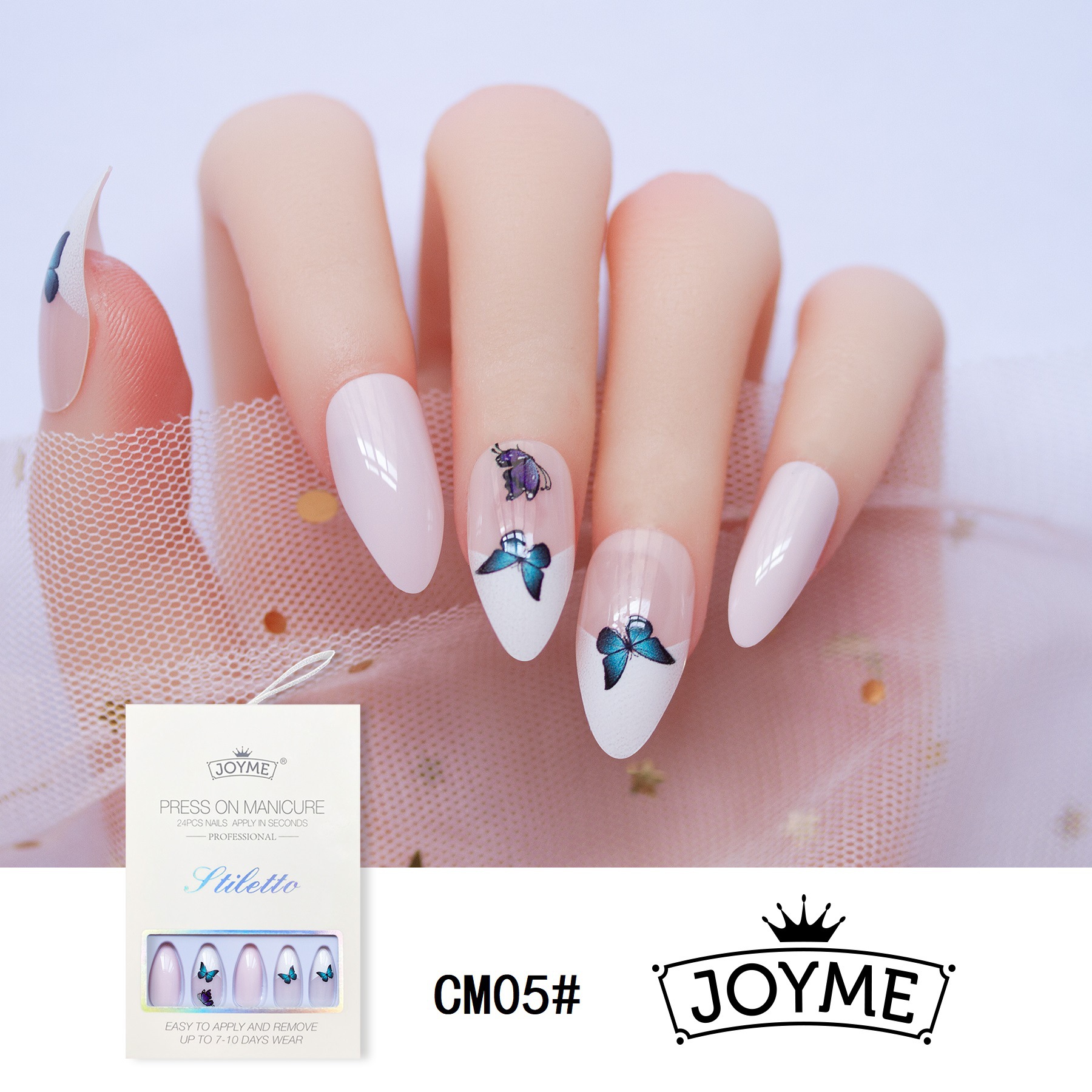 【包装方式】24片假指甲+1个挫条入一盒+24粒果冻胶 12盒一中包 480盒一箱