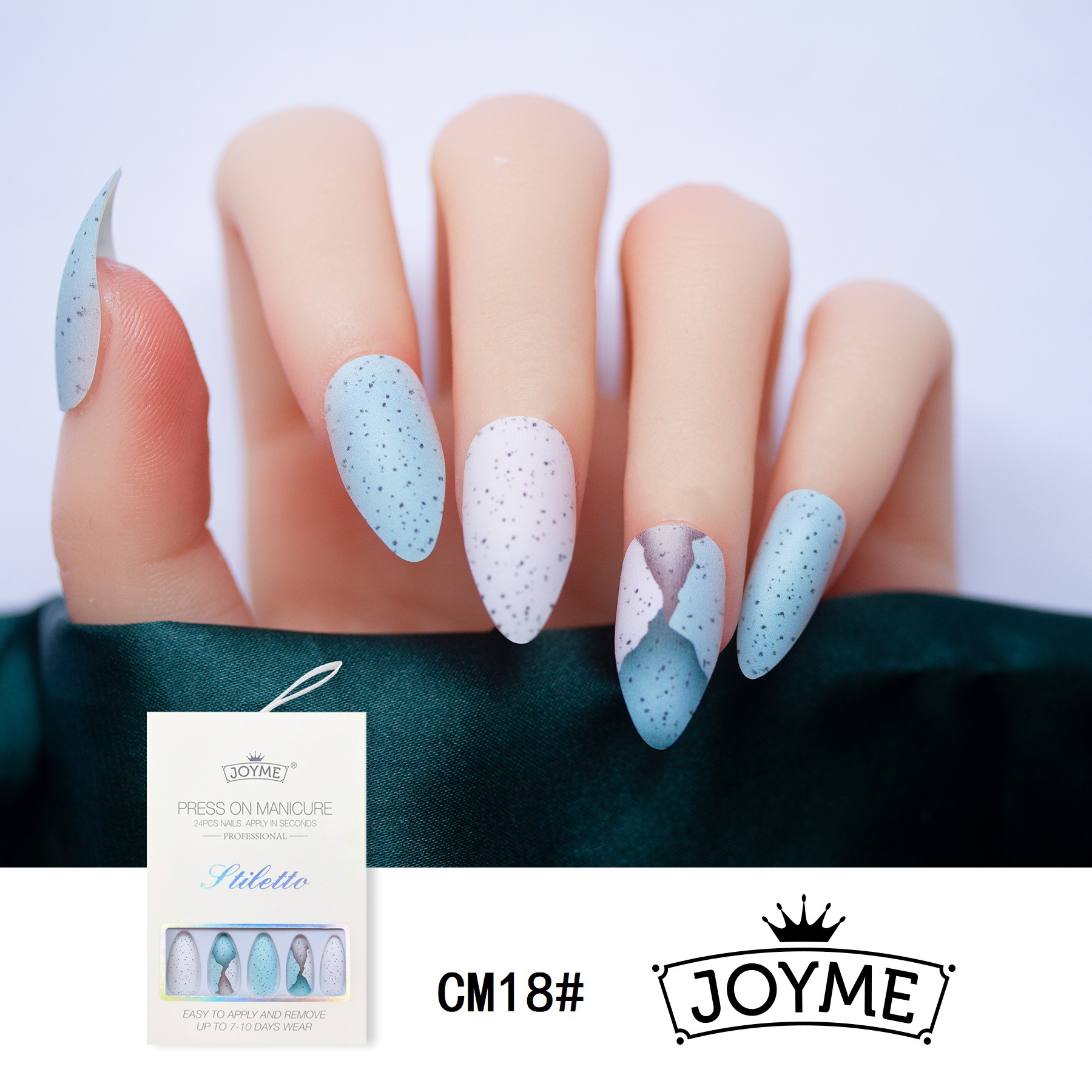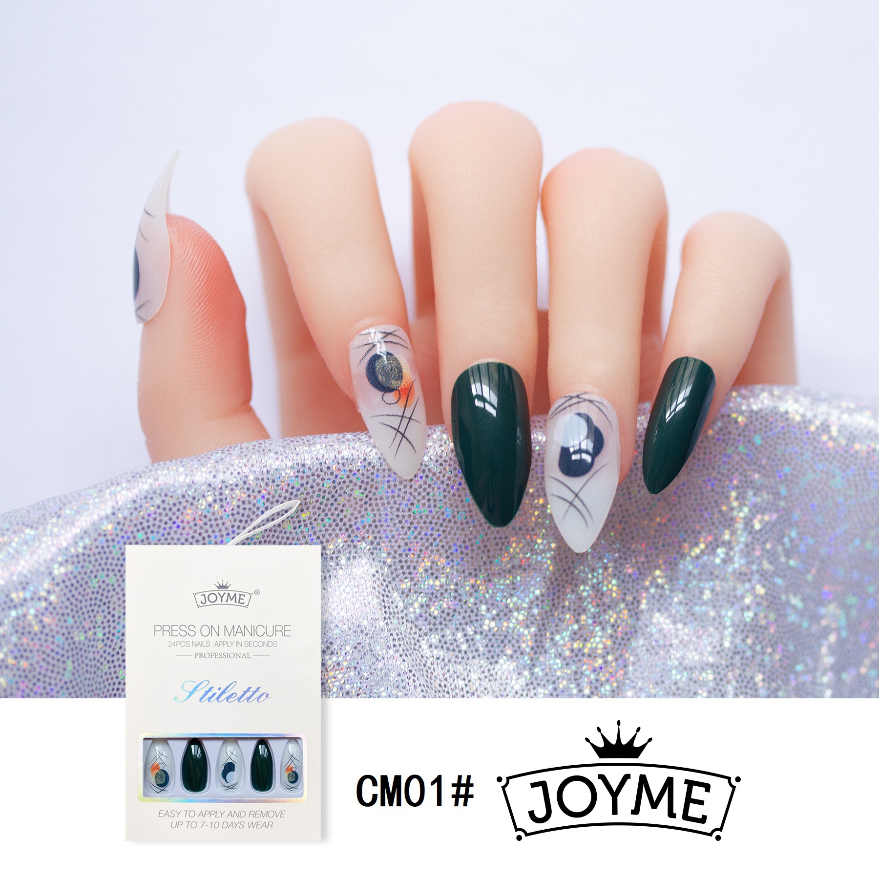 现货欧美跨境长尖头水滴甲假指甲贴片24片盒装穿戴甲配工具包