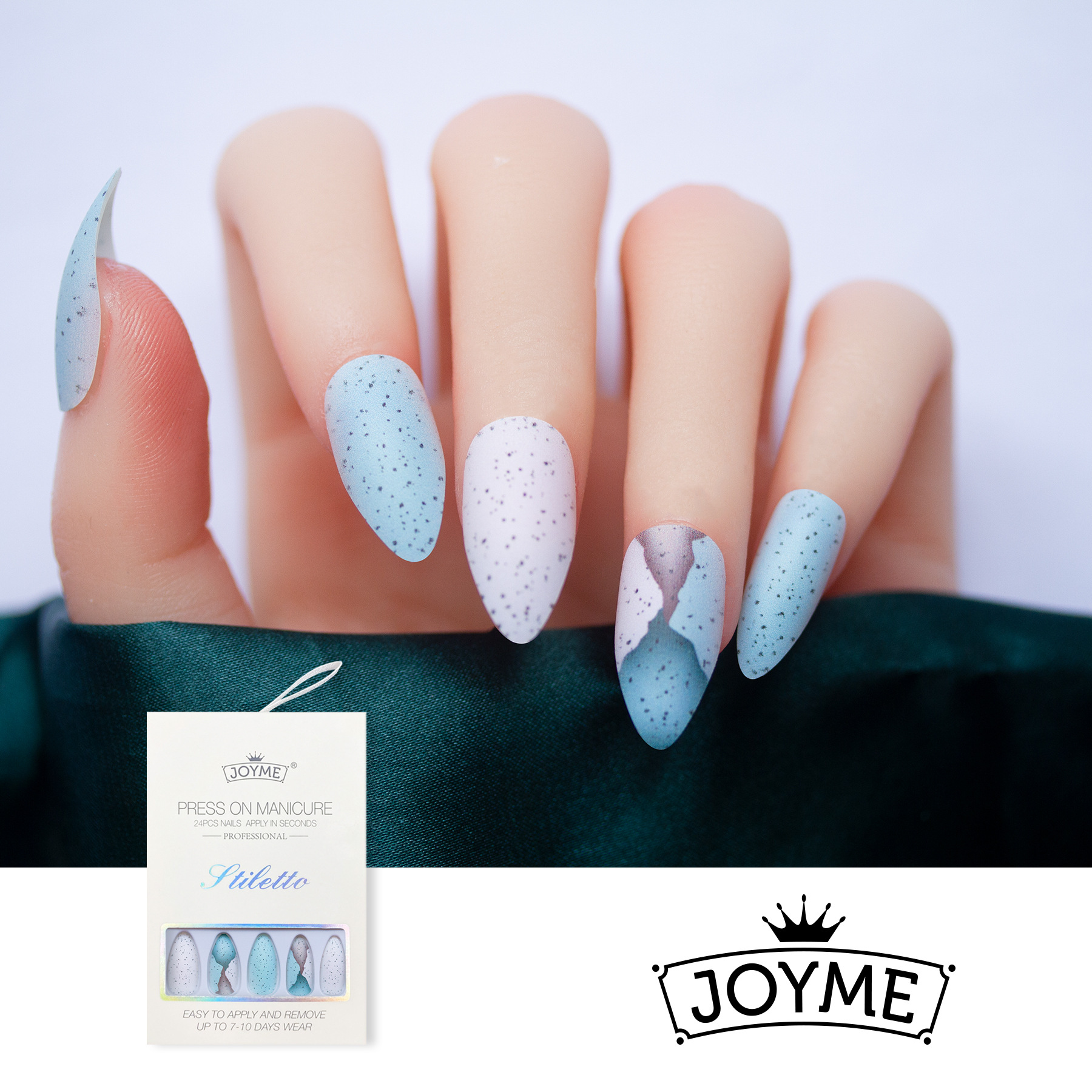 JOYME24片穿戴甲新款穿戴甲青苔石波点假指甲尖头美甲贴片现货