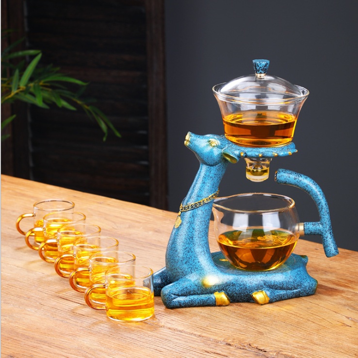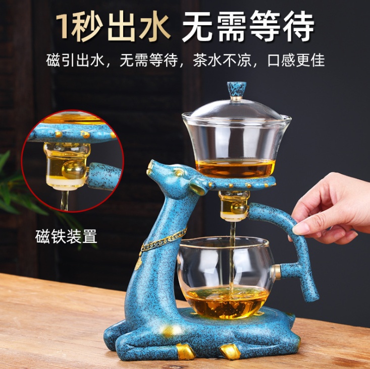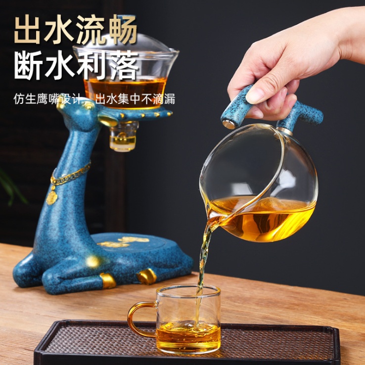网红一鹿相伴创意玻璃懒人全半自动茶具套装
