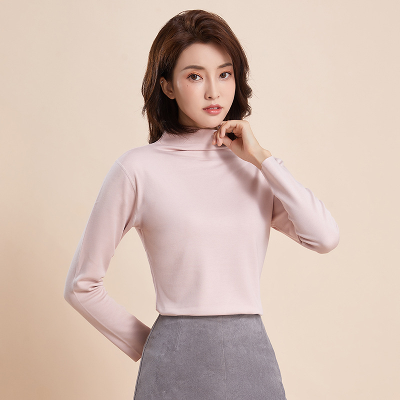新款 德绒保暖内衣女 半高领加绒磨毛打底衫长袖大码上衣批发