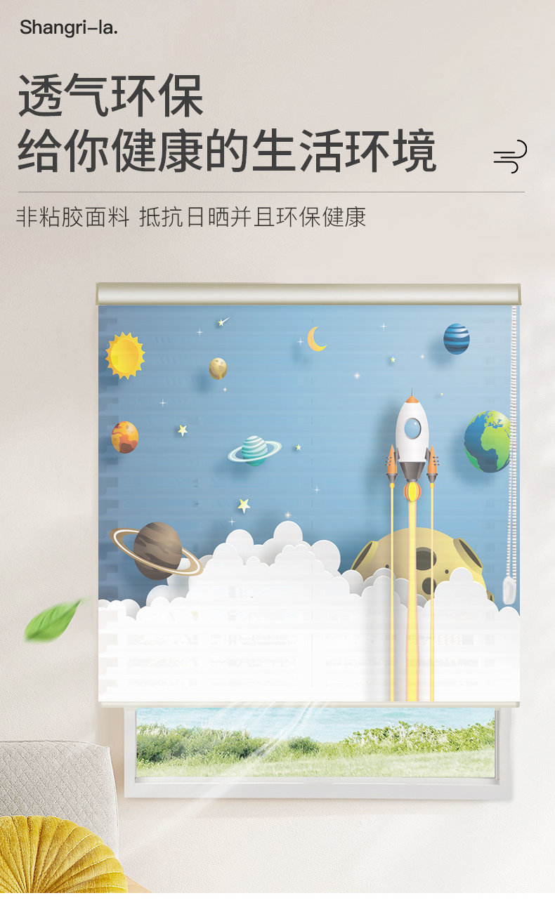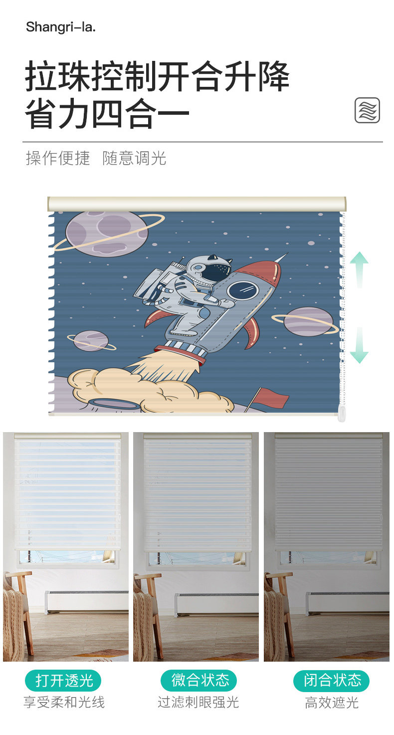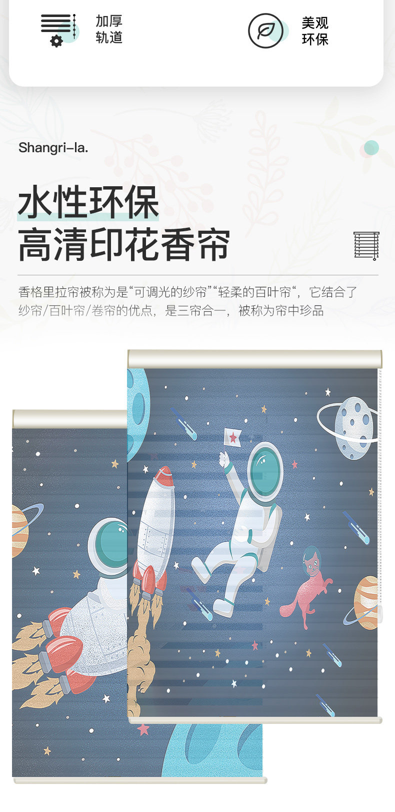 日式百叶窗帘遮光升降卷帘儿童房卧室香格里拉窗帘柔纱帘遨游太空