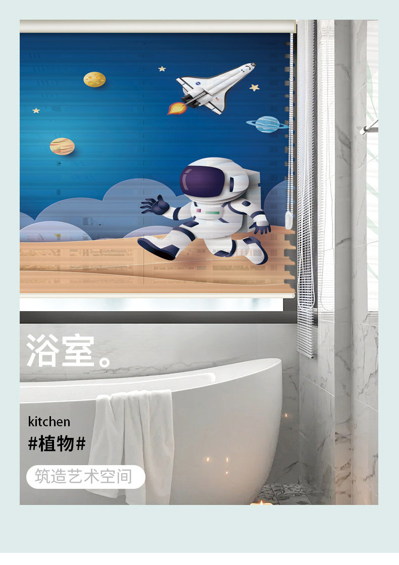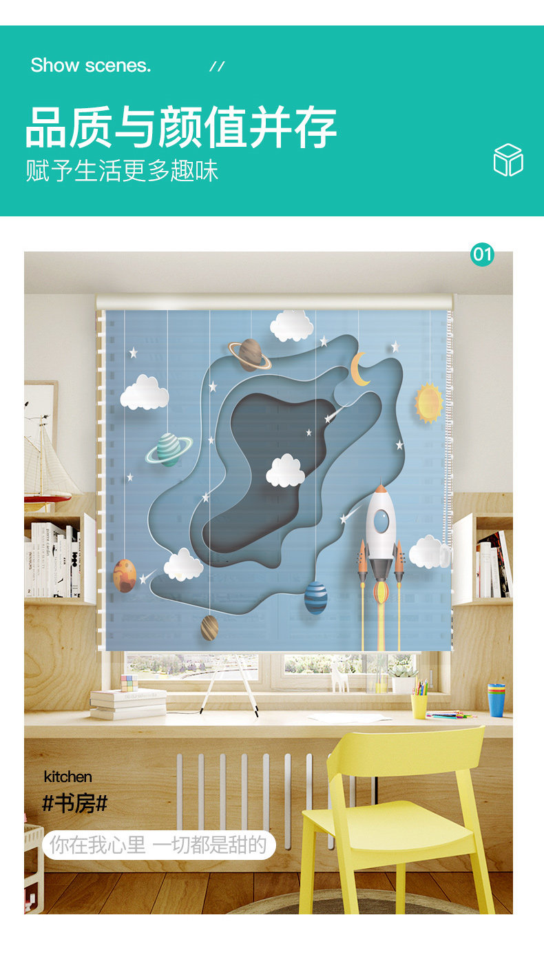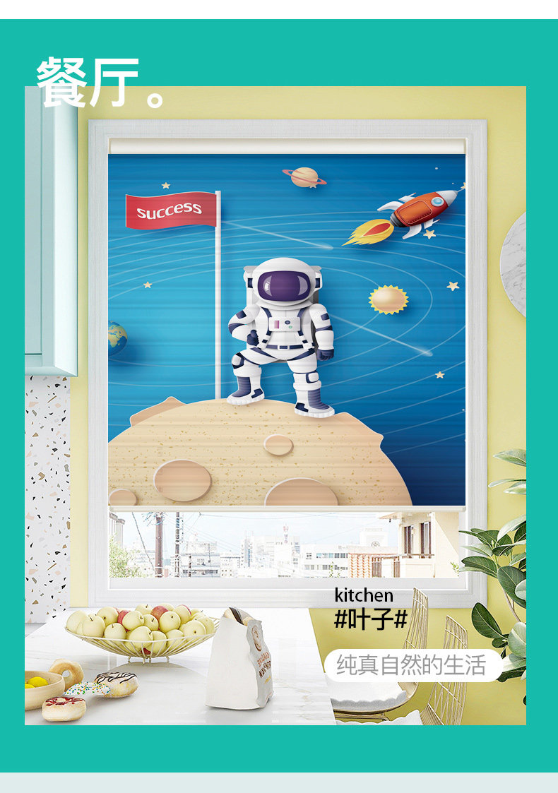 日式百叶窗帘遮光升降卷帘儿童房卧室香格里拉窗帘柔纱帘遨游太空