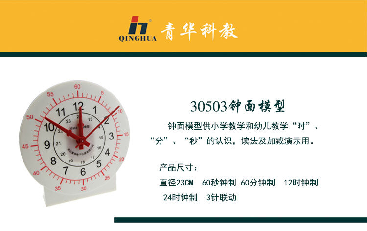 大号钟表面钟表模型 三针联动24小时 学生认识时间小学教学教具