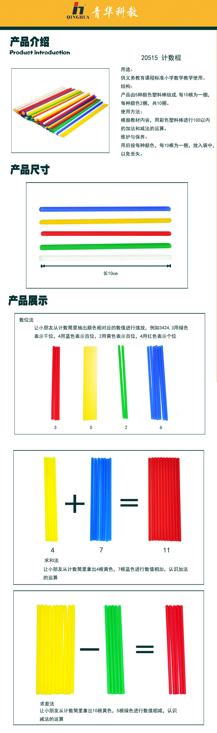 彩色计数棒小学数学教具,材质安全认证,直观学习加减法,解决孩子数学兴趣低痛点。