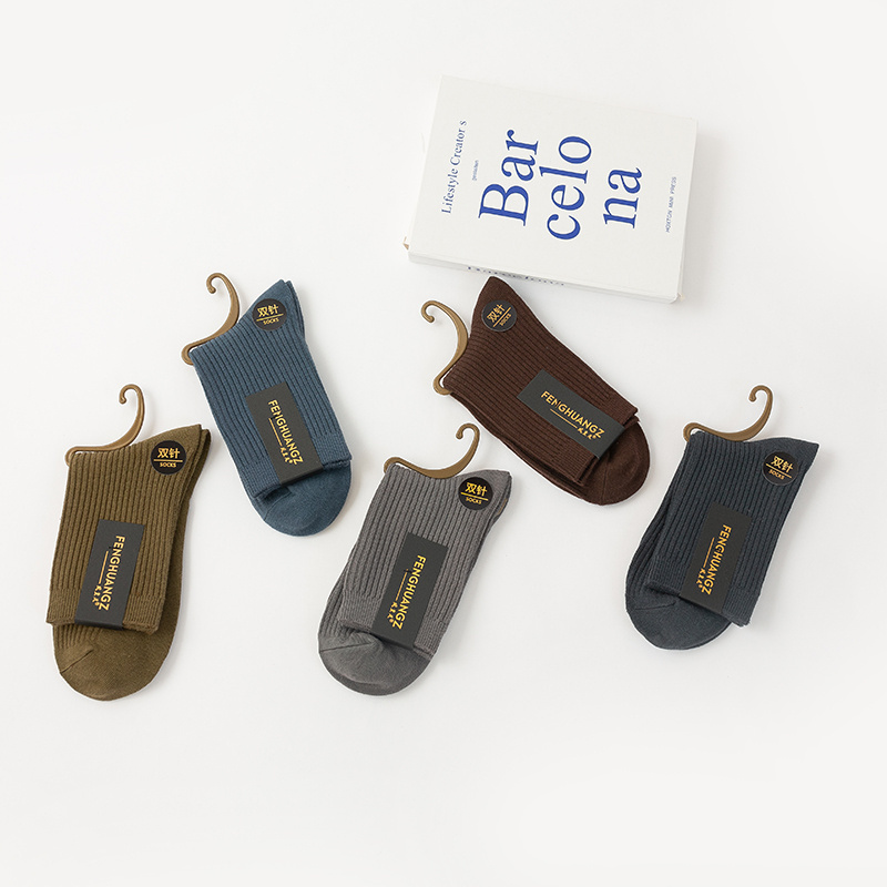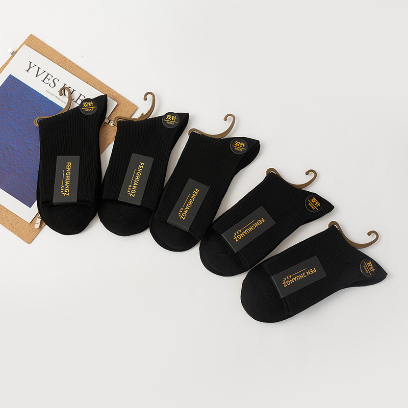 秋冬新款男袜纯棉双针中筒保暖袜纯色黑白灰精品棉袜厂家批发订做
