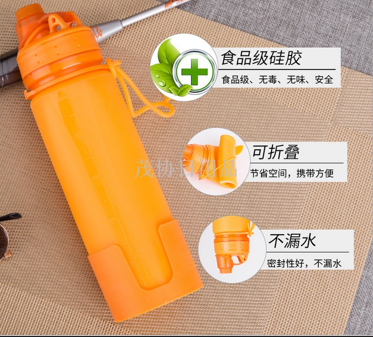 新款户外旅行折叠水杯运动便携式食品级硅胶运动壶
