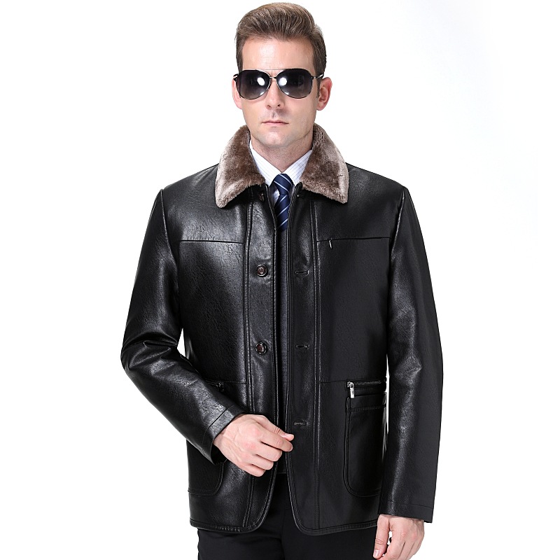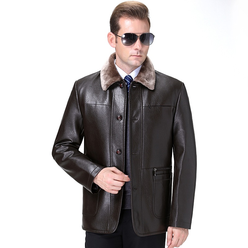 爸爸冬装外套加绒加厚中年皮西装中老年男装皮毛一体皮衣