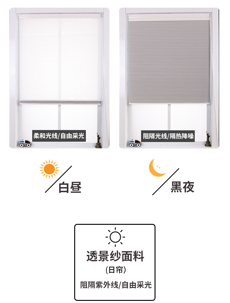 免打孔安装拉绳日夜蜂巢帘卧室客厅遮阳帘隔热风琴帘防水百叶窗帘
