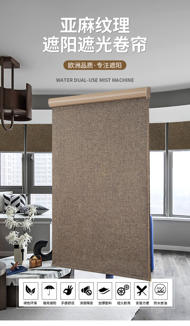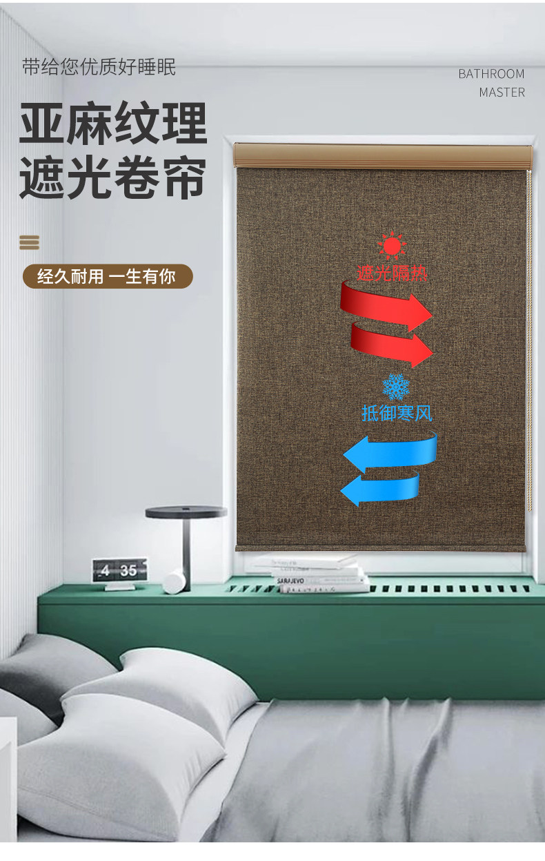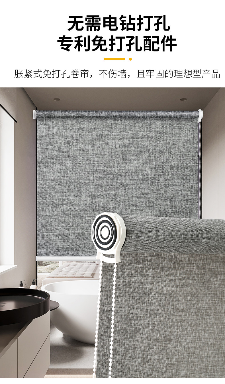 卷帘窗帘免打孔安装卫生间全遮光防水手拉卷拉式办公室升降定制