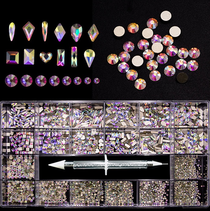 新品钻21格平底异形钻大小混装盒装美甲饰品钻
