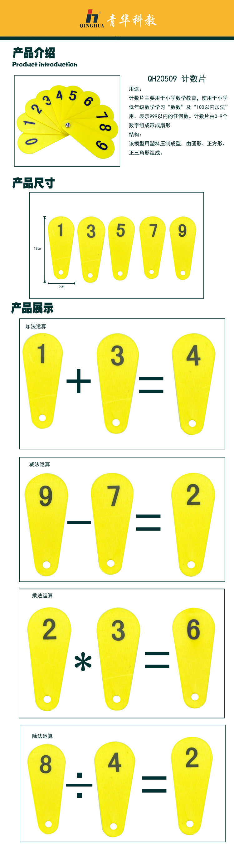 学生用数字计数卡片 小学数学算数加减法蒙氏早教教学教具仪器