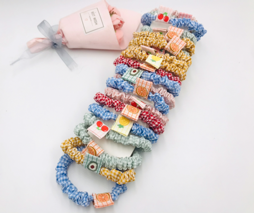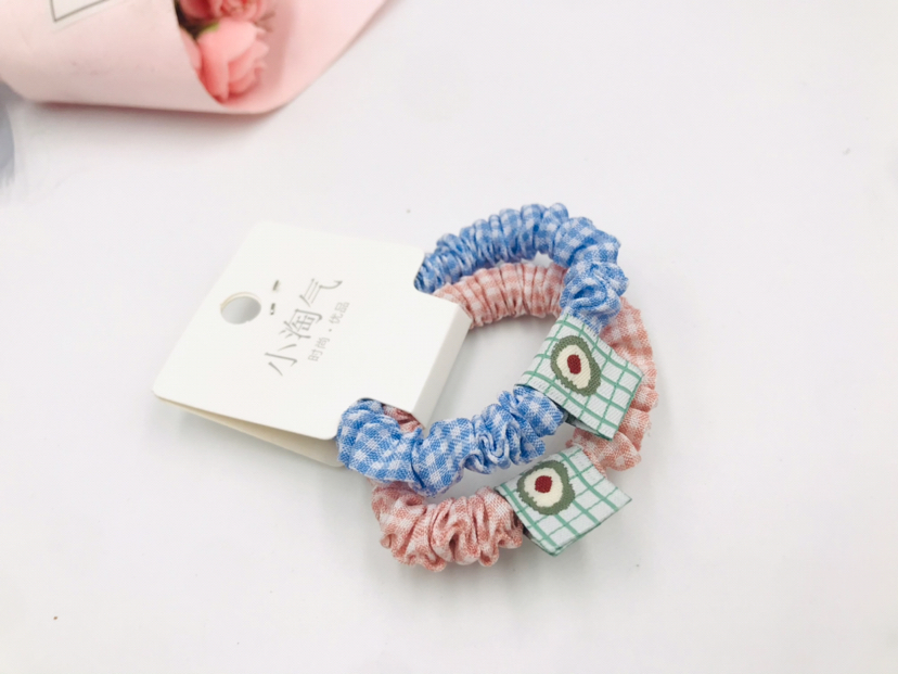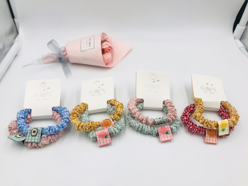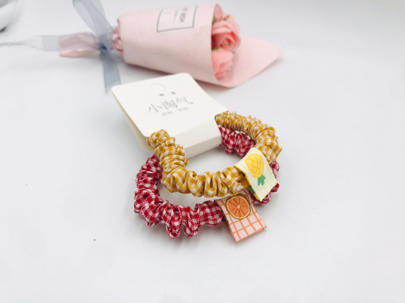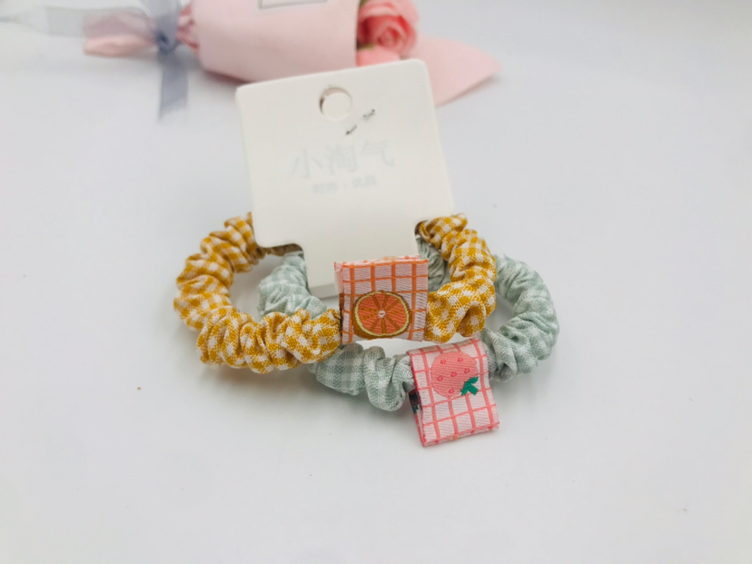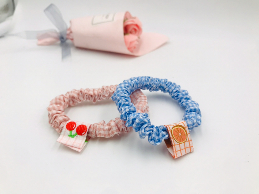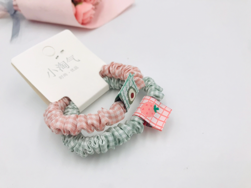 彩色格子布艺发圈新款贴标签布艺发绳学生简约扎马尾 头绳
