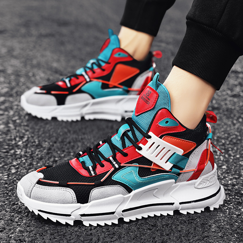 跨境ins风老爹鞋高帮运动风网面厚底休闲男鞋秋冬拼色2024年