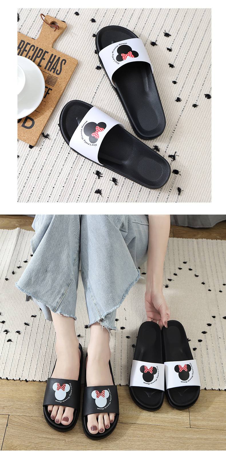 新款家居一字拖鞋学生情侣凉拖鞋卡通米奇拖鞋可爱老鼠室内凉拖鞋