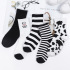 袜子女秋冬中筒女袜冬季ins潮流黑白可爱奶牛斑点百搭长筒袜条纹