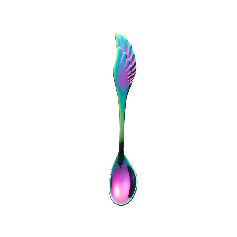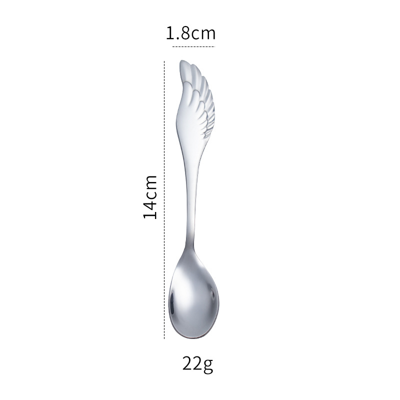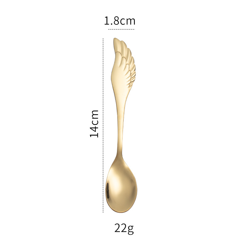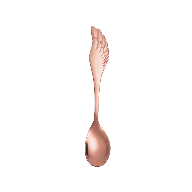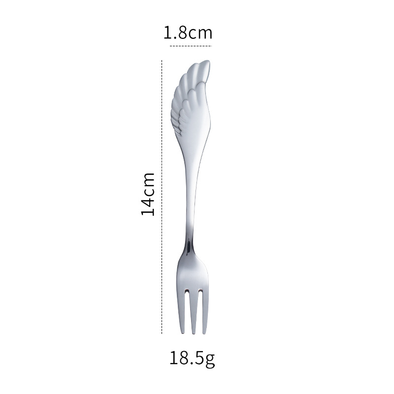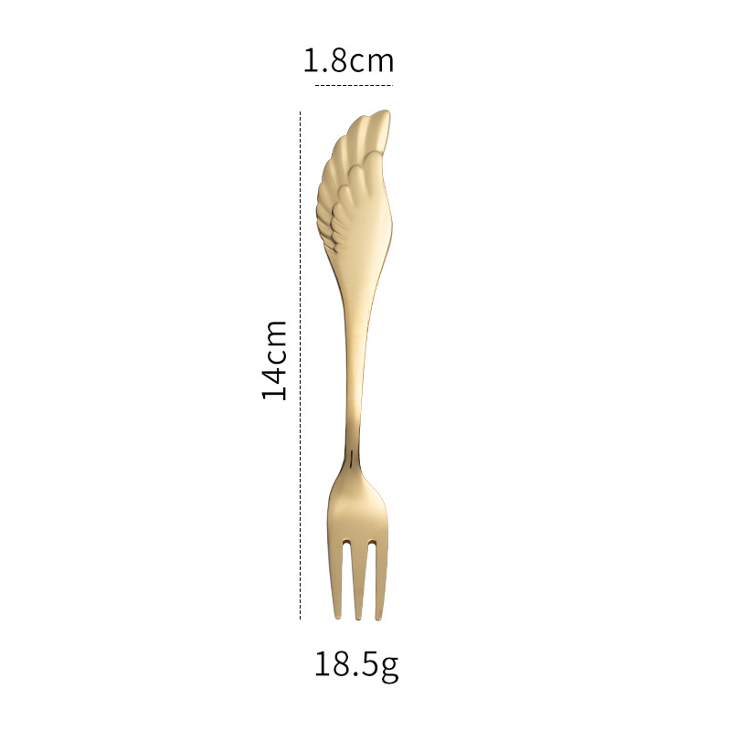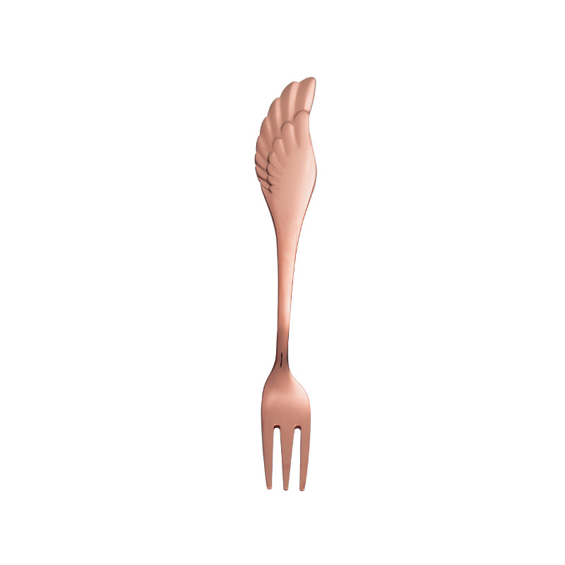 新品304不锈钢翅膀勺叉创意咖啡甜品勺水果叉子勺子粉色礼盒套装