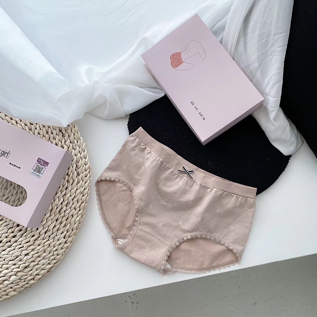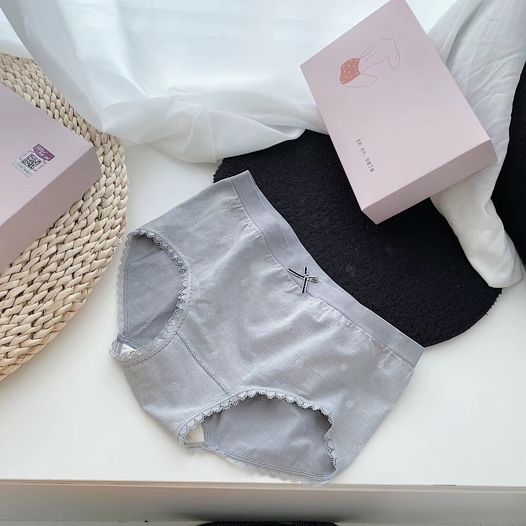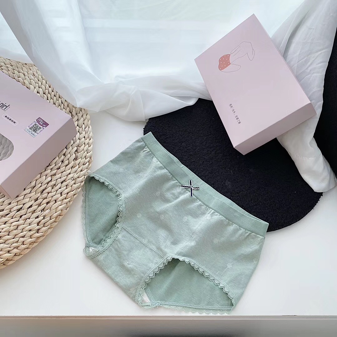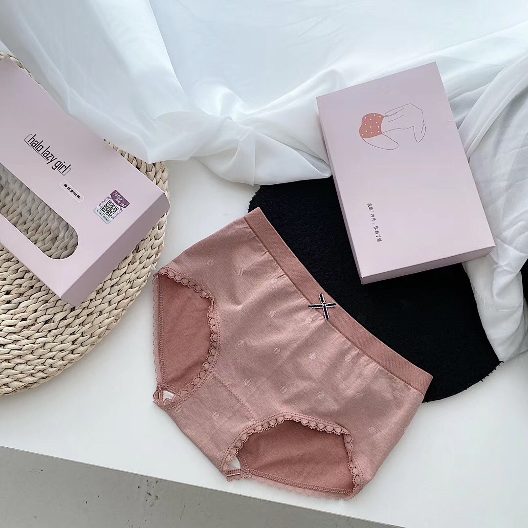 metwo微商波点纯棉内裤女 中腰包臀无缝蕾丝边韩式少女三角裤