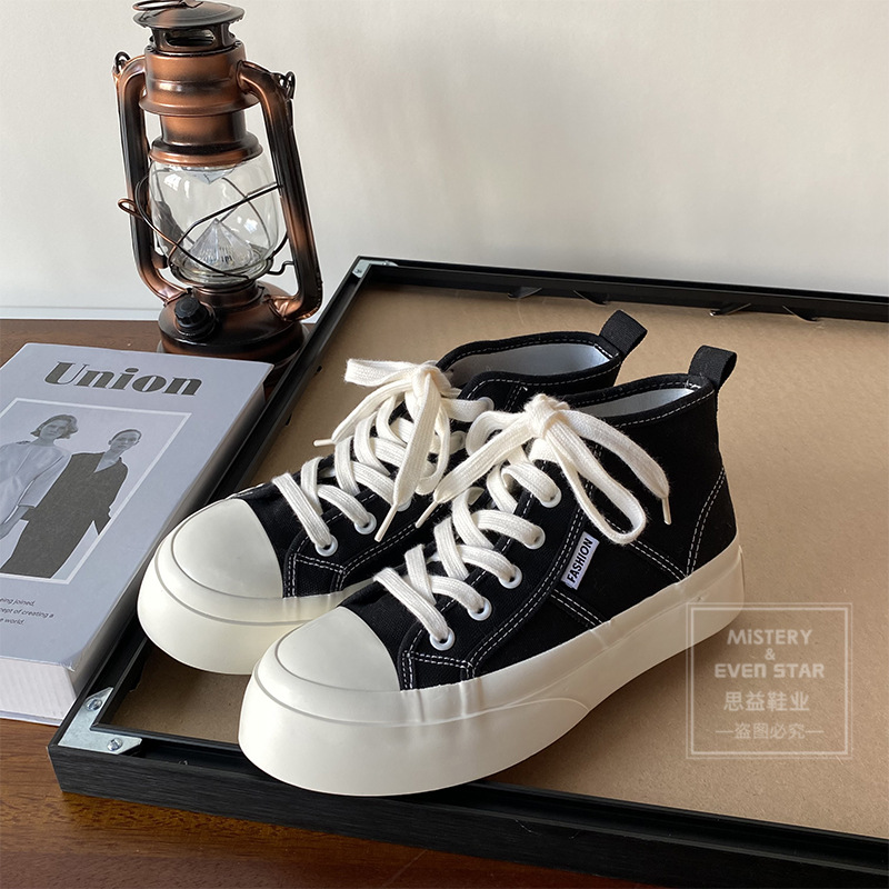 厚底高帮帆布鞋女憨憨大头鞋2024秋季新款女鞋休闲板鞋