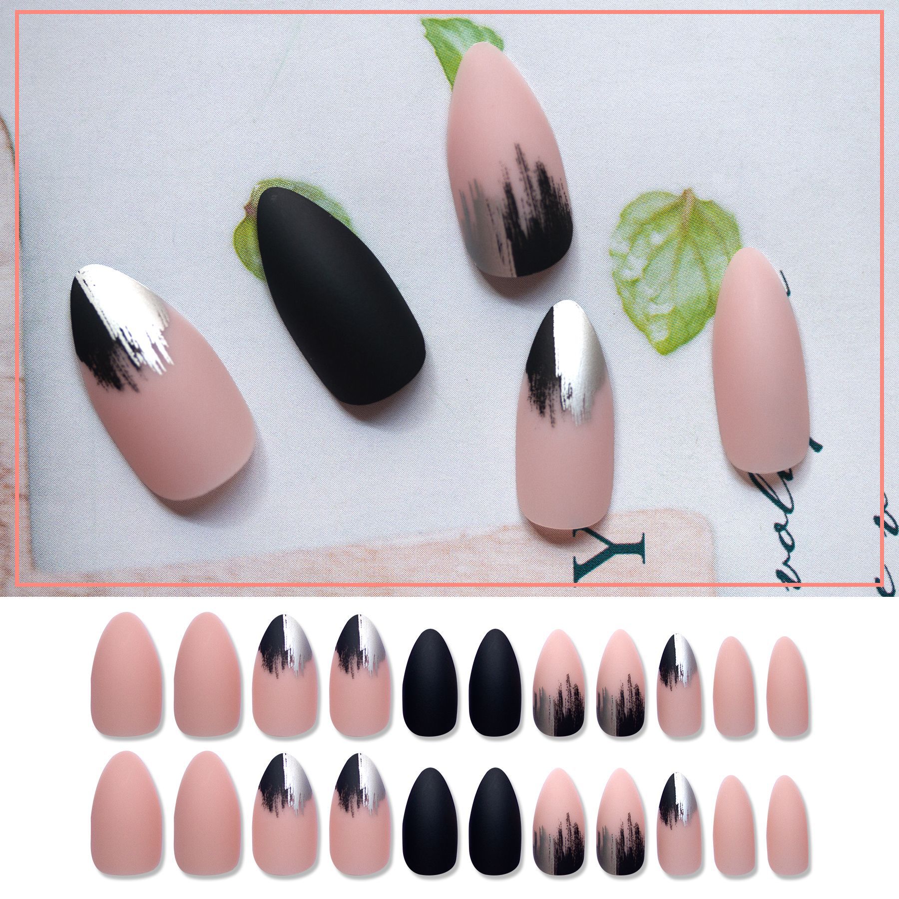 2021欧美长款尖头假指甲美甲片24片成品穿戴甲盒装厂家直销现货