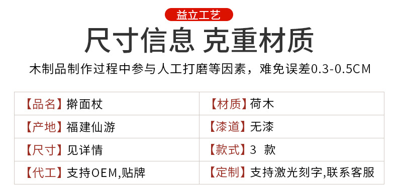 滚轴糕点饼干印花擀面杖擀面杖榉木无漆饺子皮擀面杖烘焙