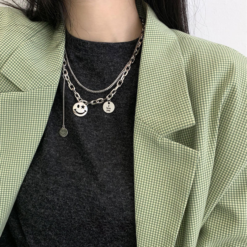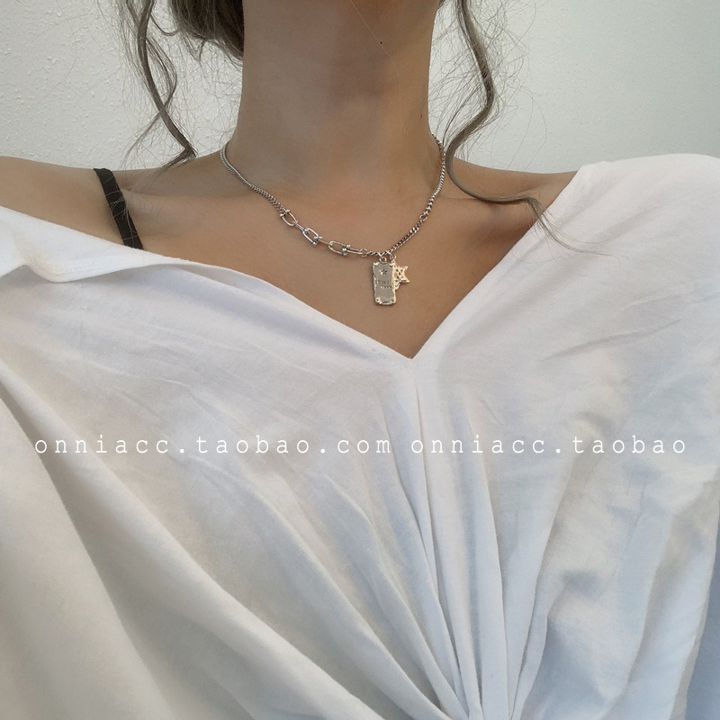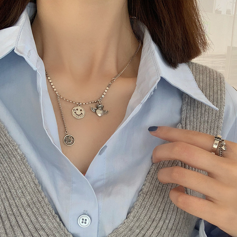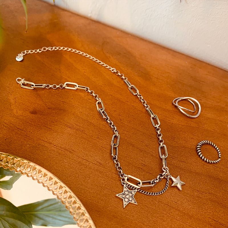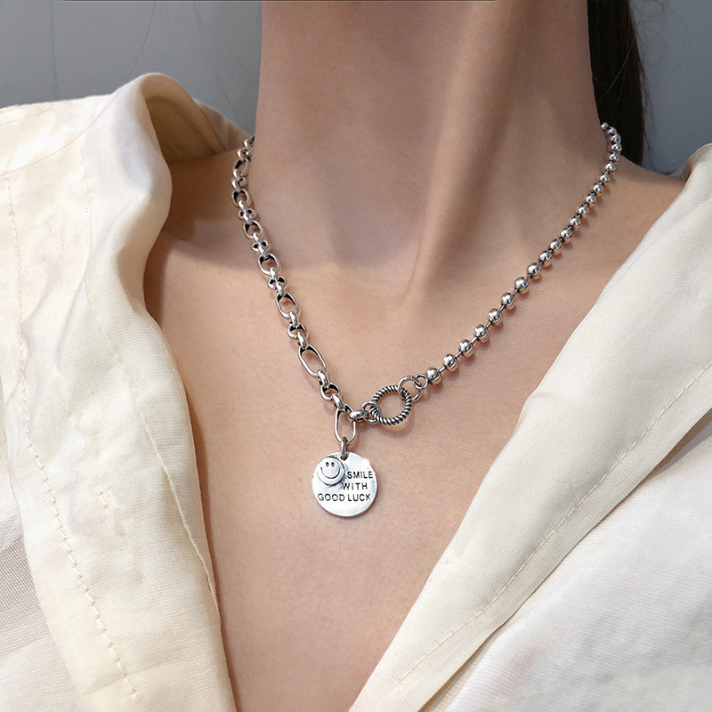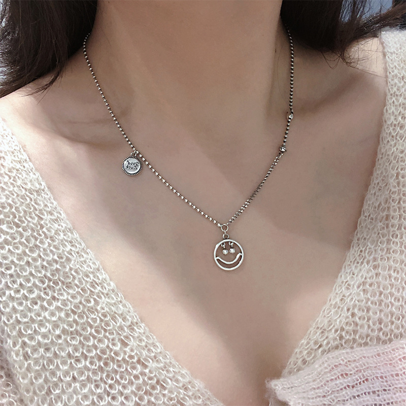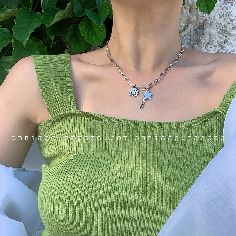 925纯银定制泰银笑脸星星项链女ins嘻哈大象锁骨链简约复古毛衣链