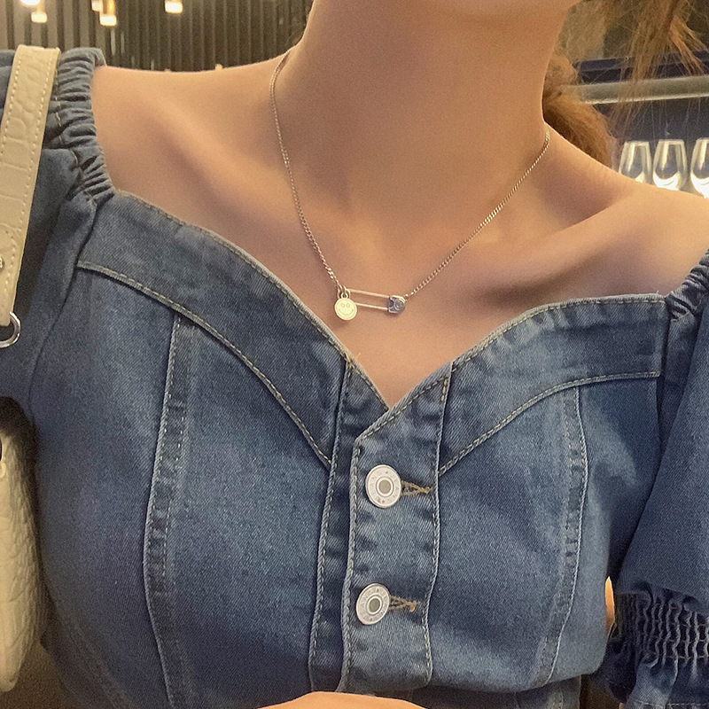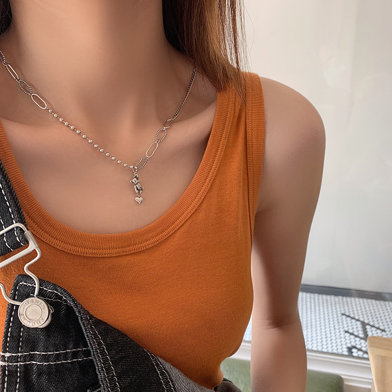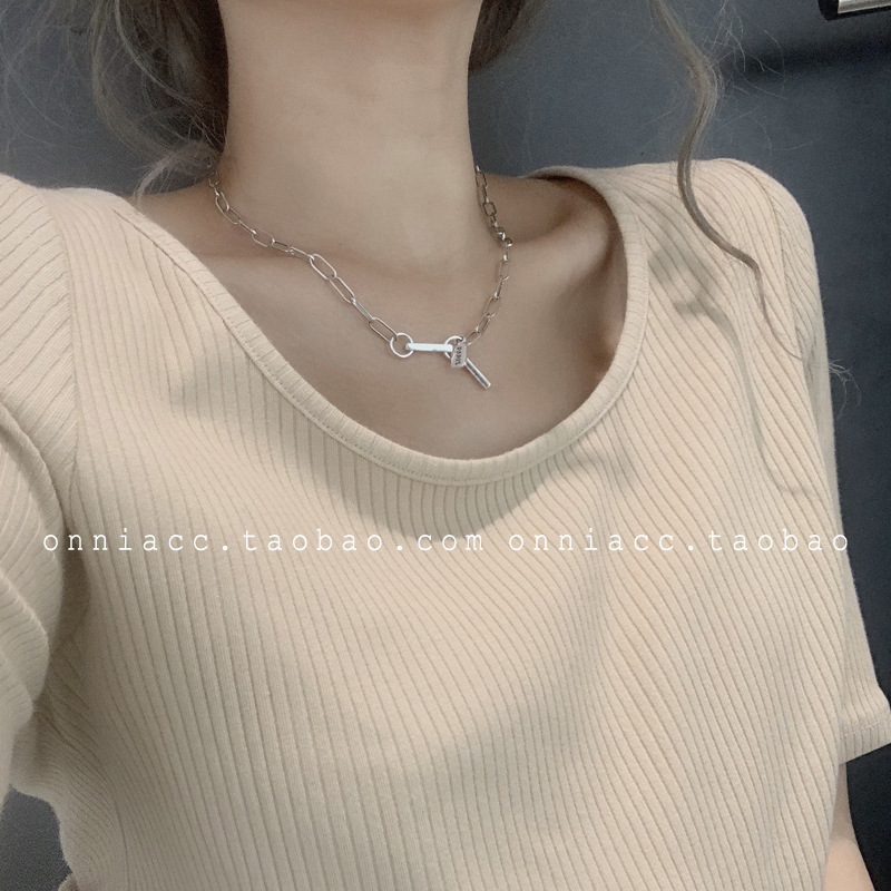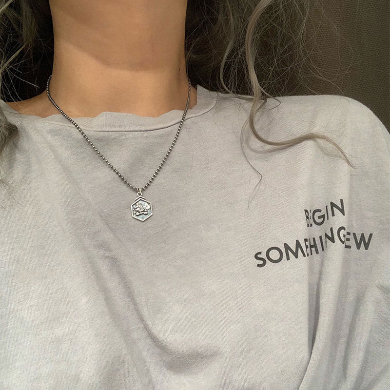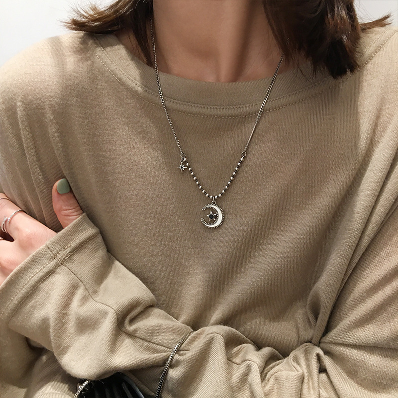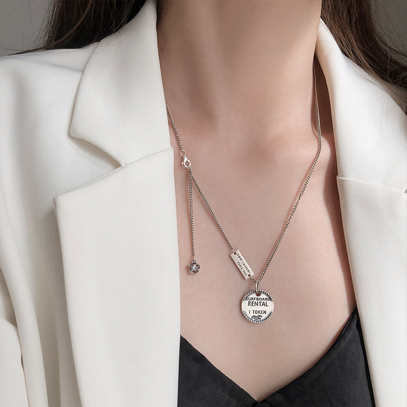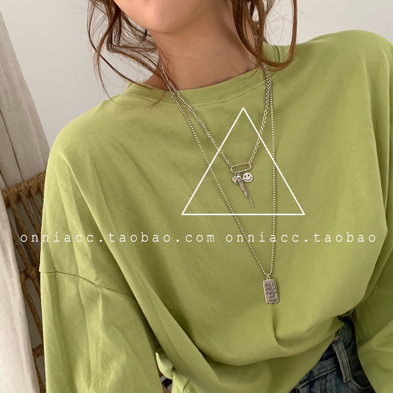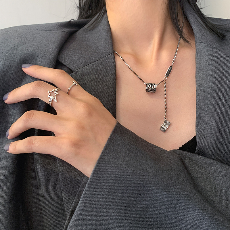 925纯银定制泰银笑脸星星项链女ins嘻哈大象锁骨链简约复古毛衣链