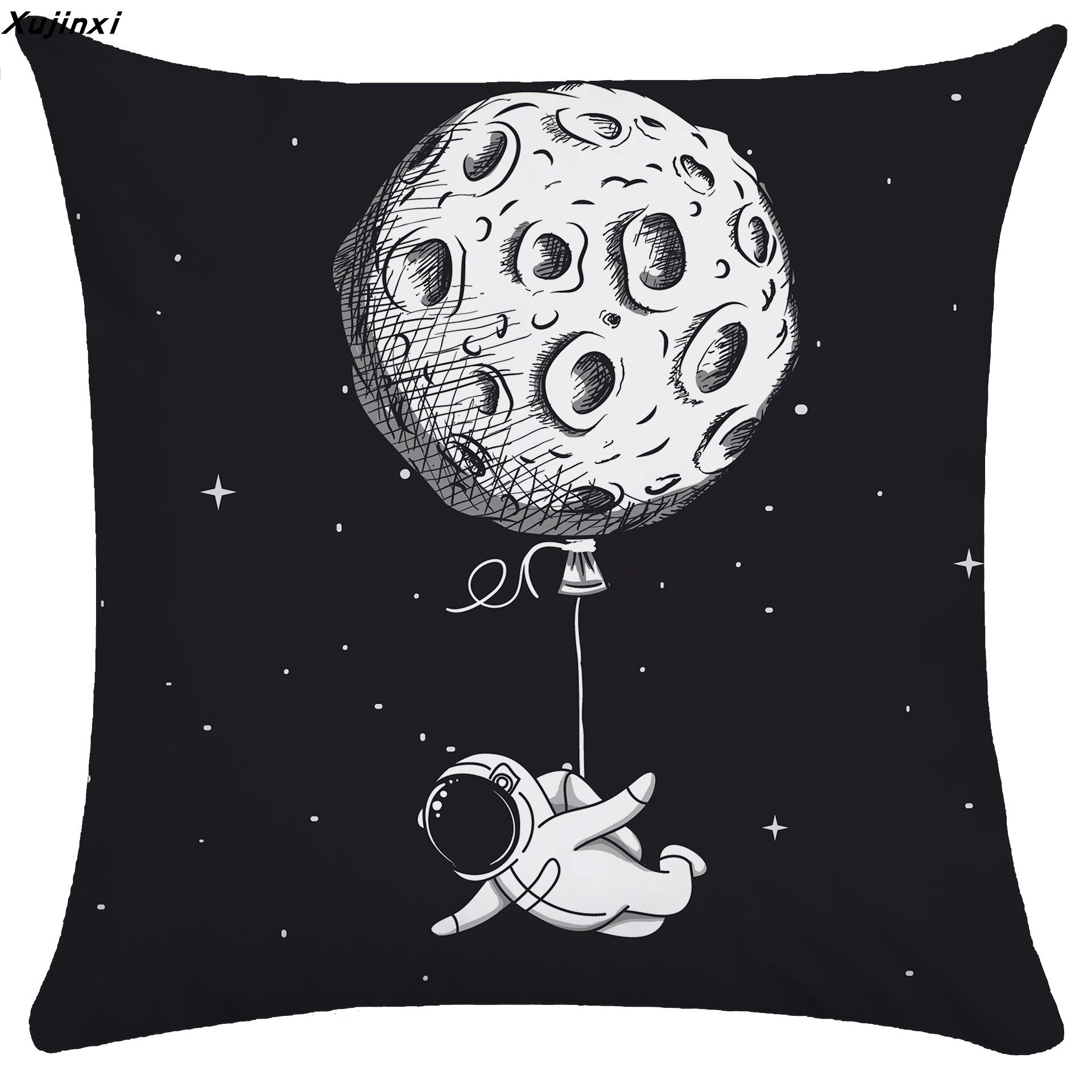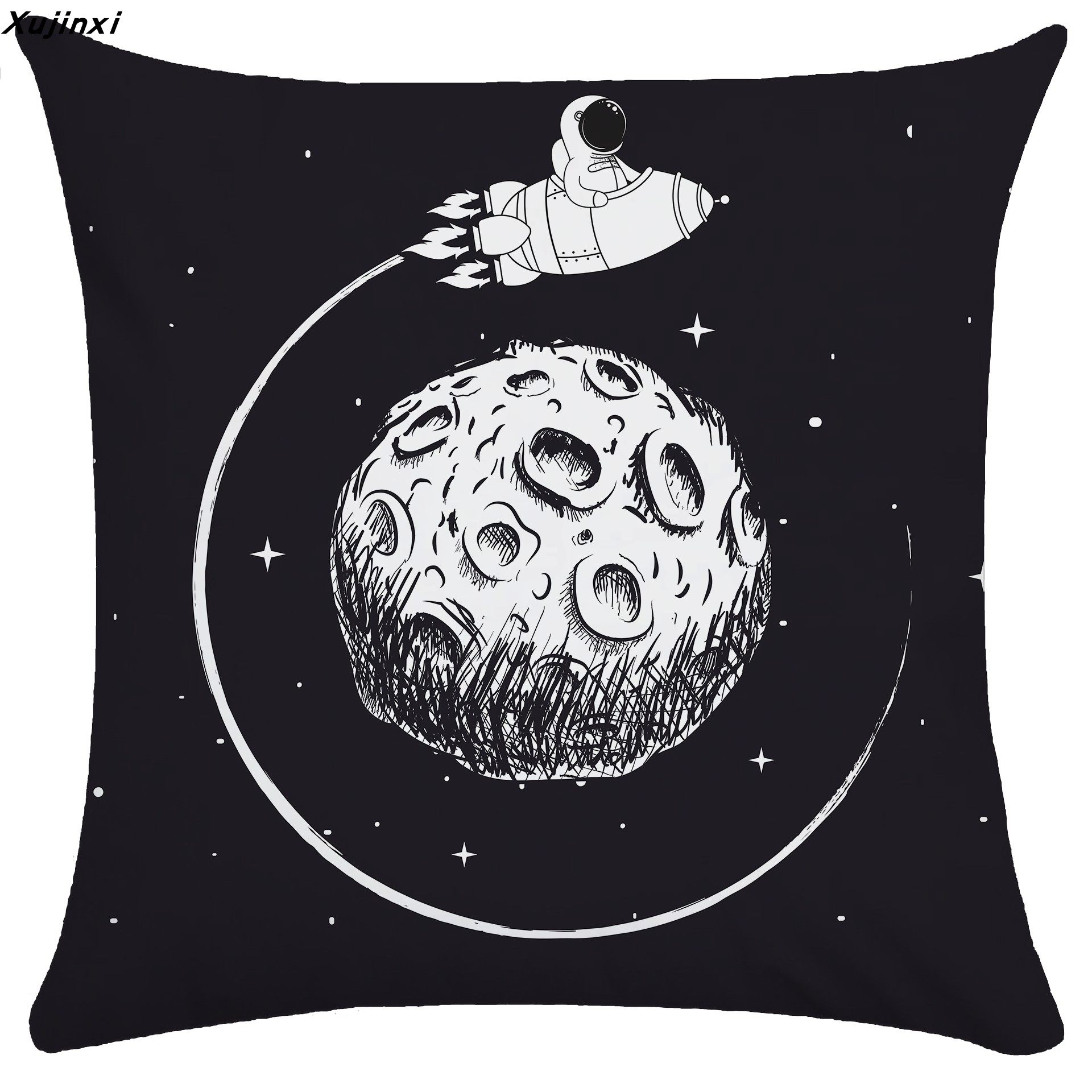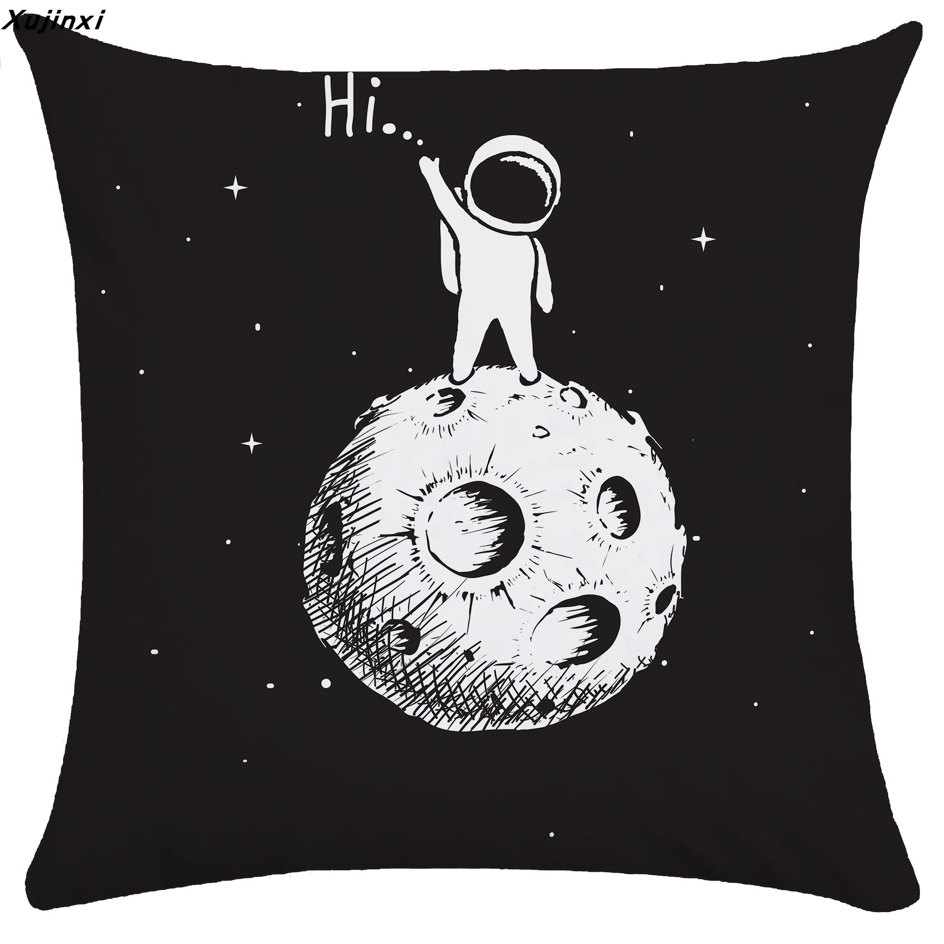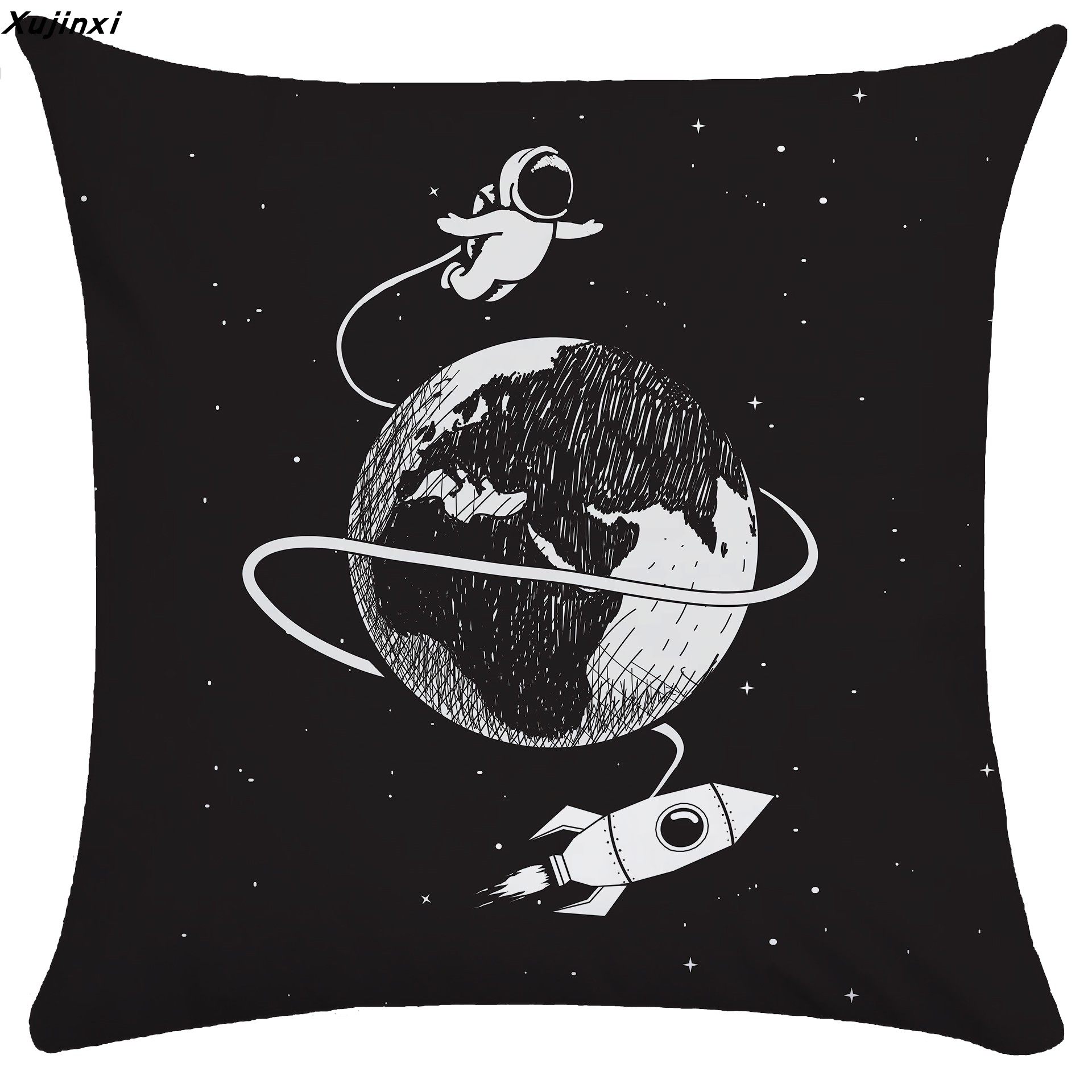 北欧ins卡通宇航员靠垫抱枕套双面黑色宇宙星球飞船学生床头腰枕