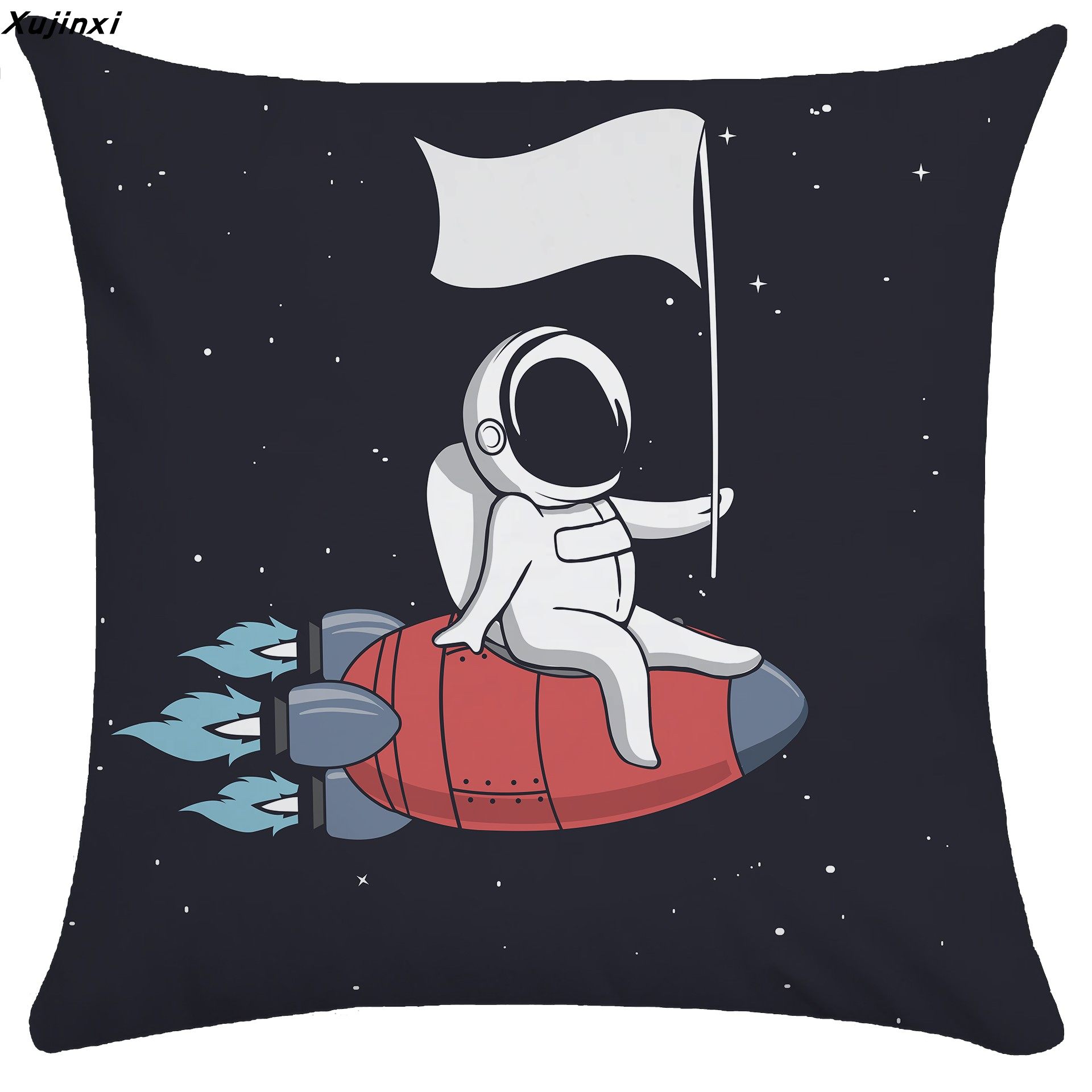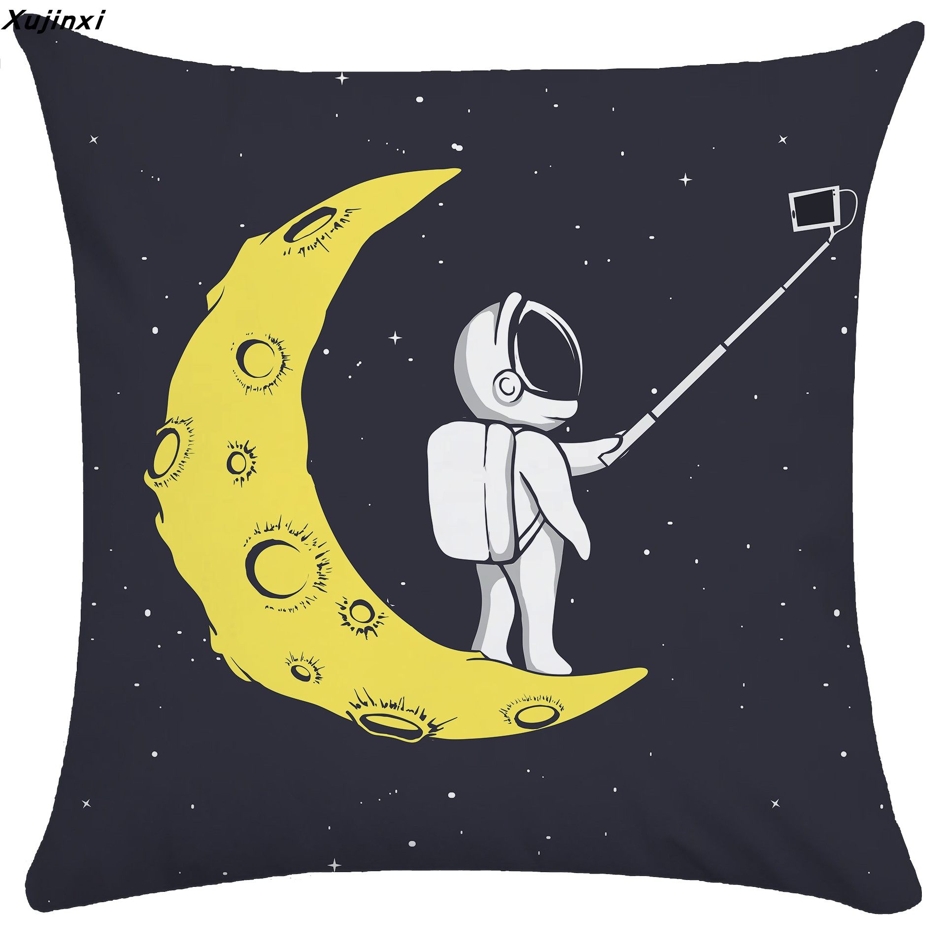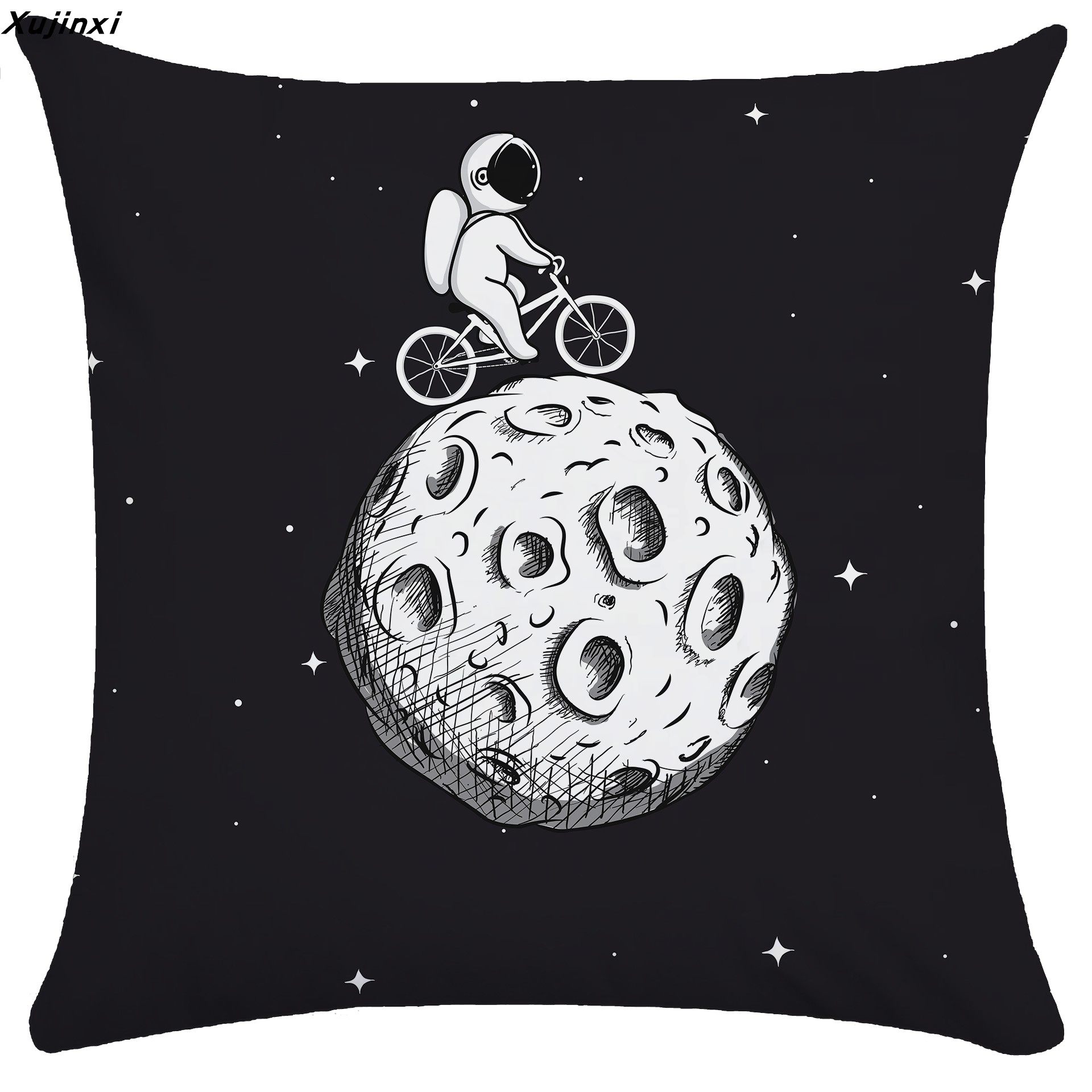 北欧ins卡通宇航员靠垫抱枕套双面黑色宇宙星球飞船学生床头腰枕