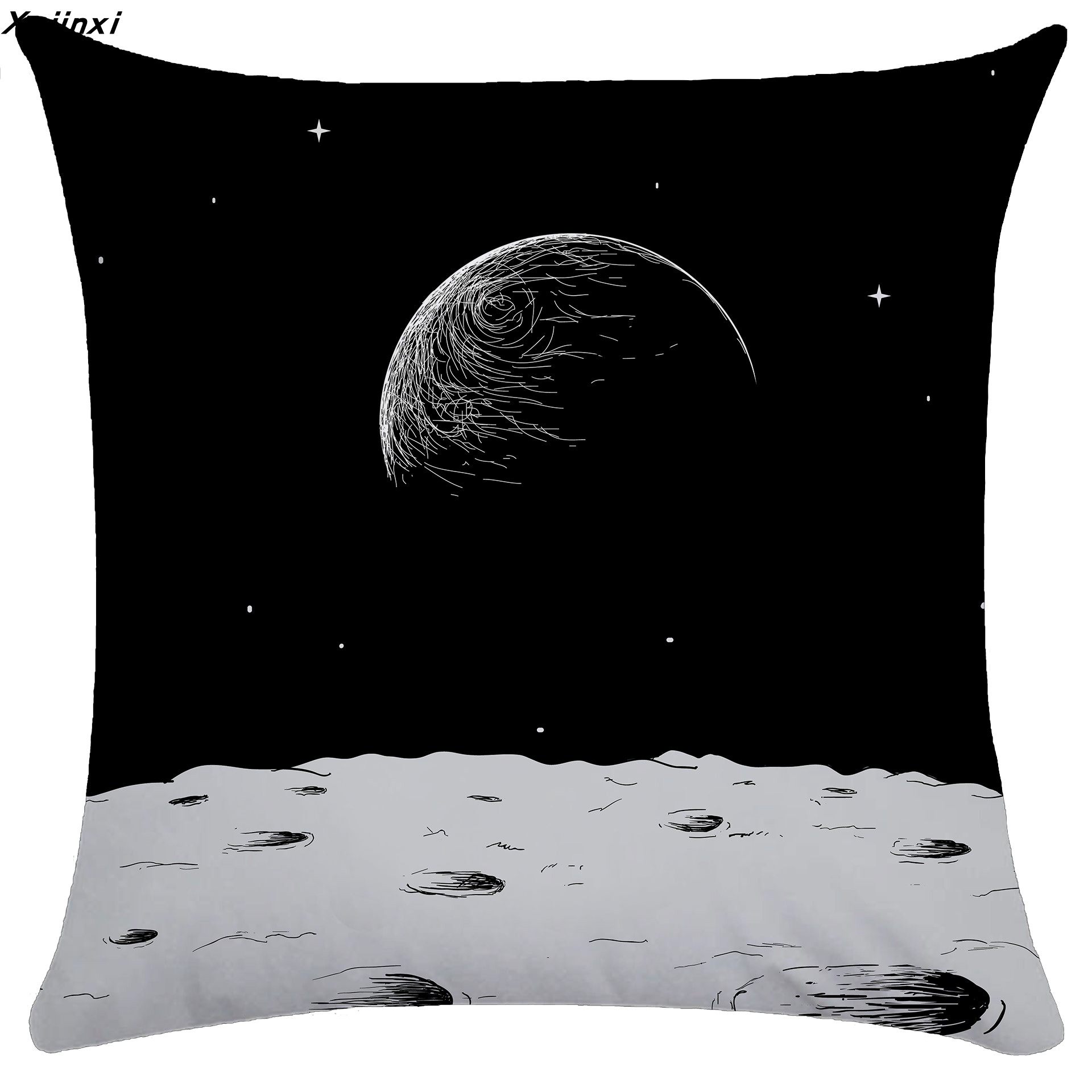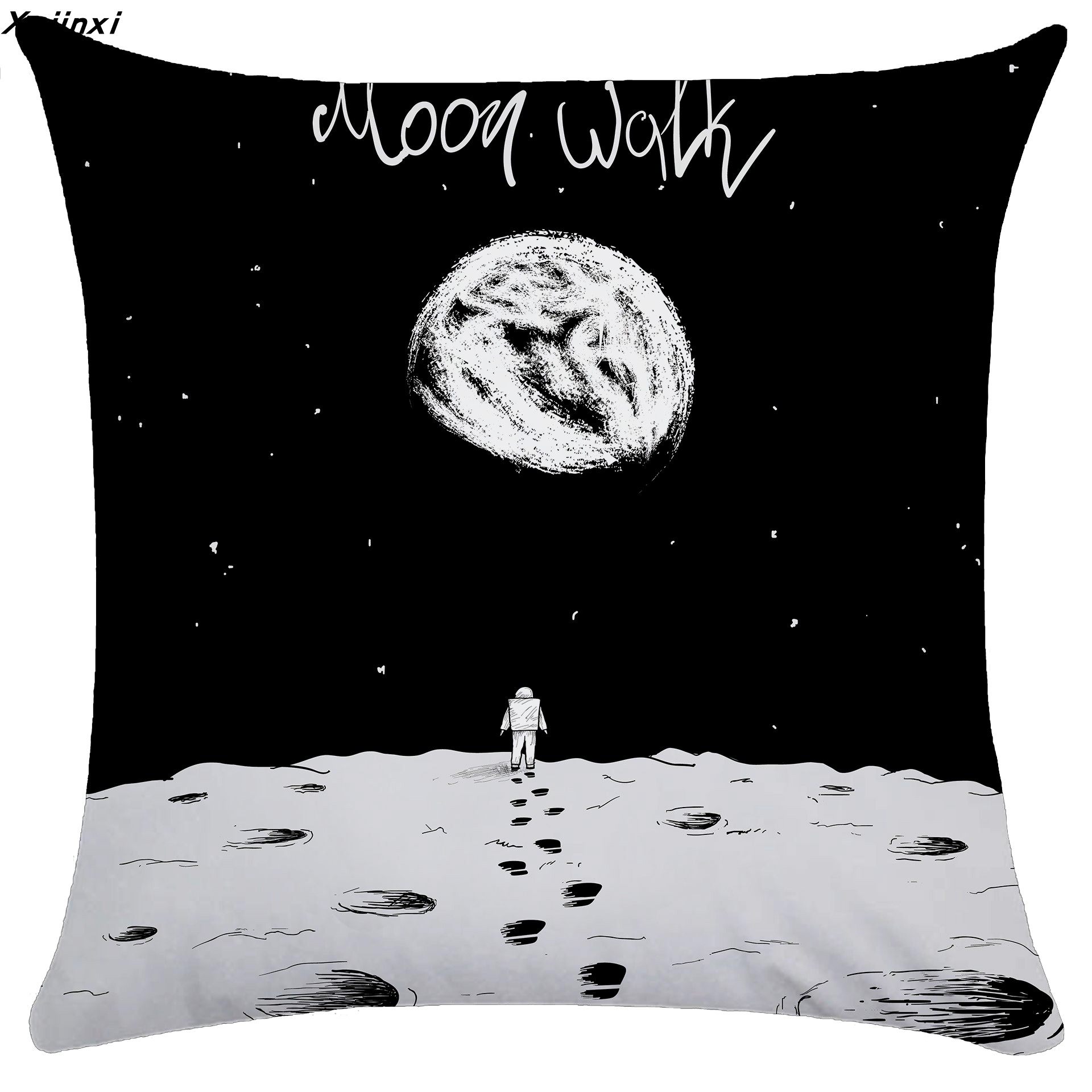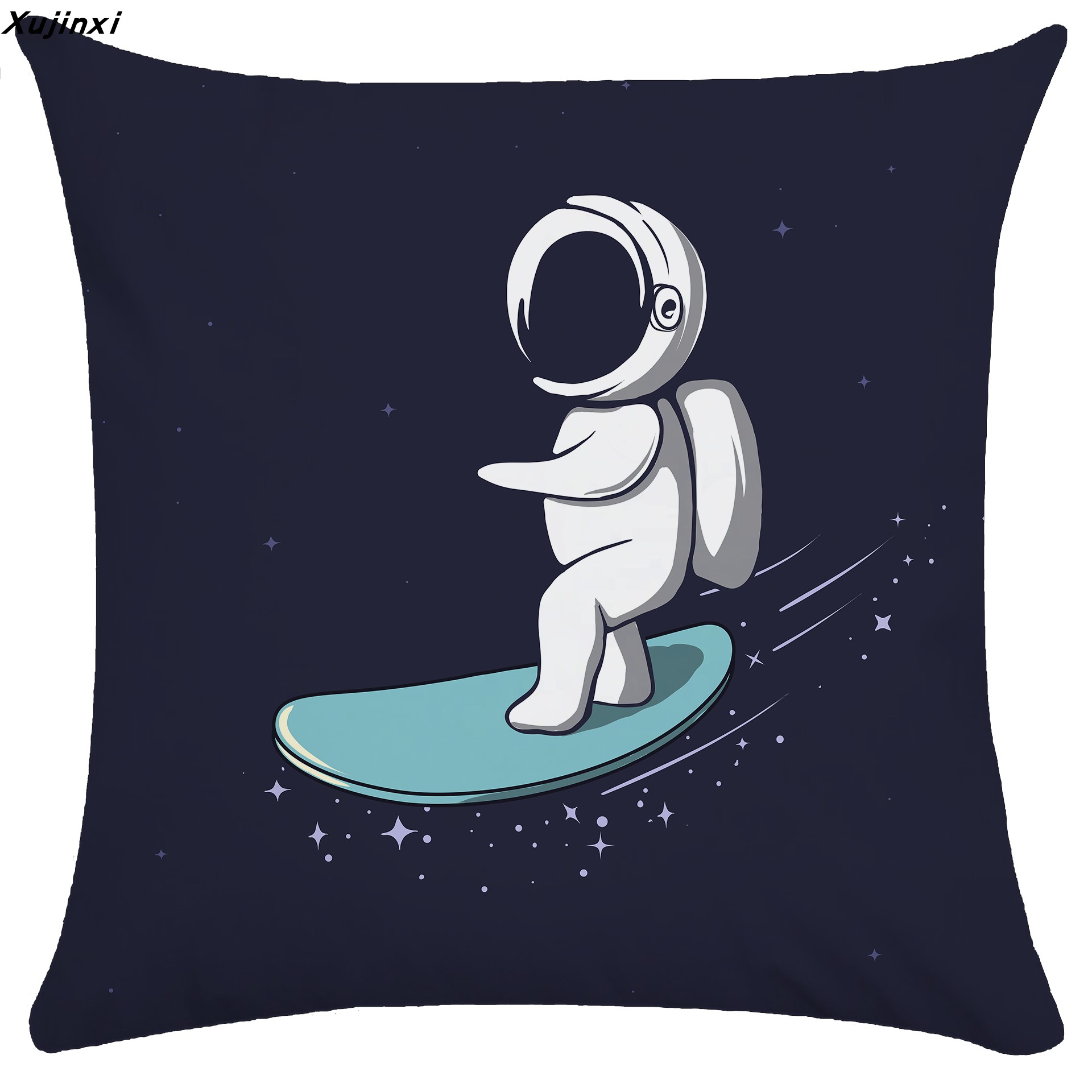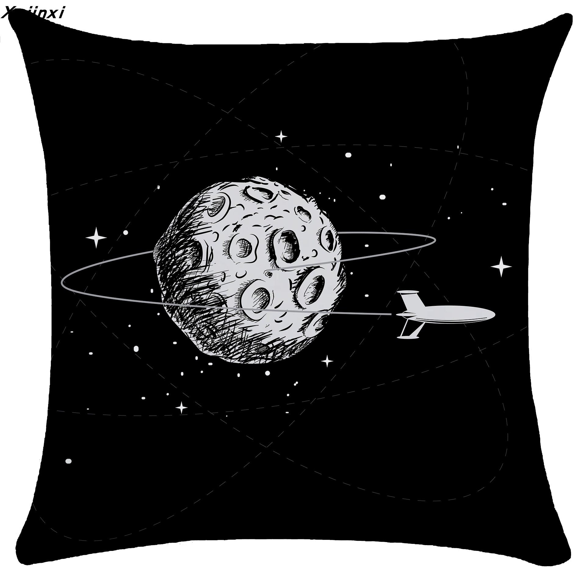 北欧ins卡通宇航员靠垫抱枕套双面黑色宇宙星球飞船学生床头腰枕