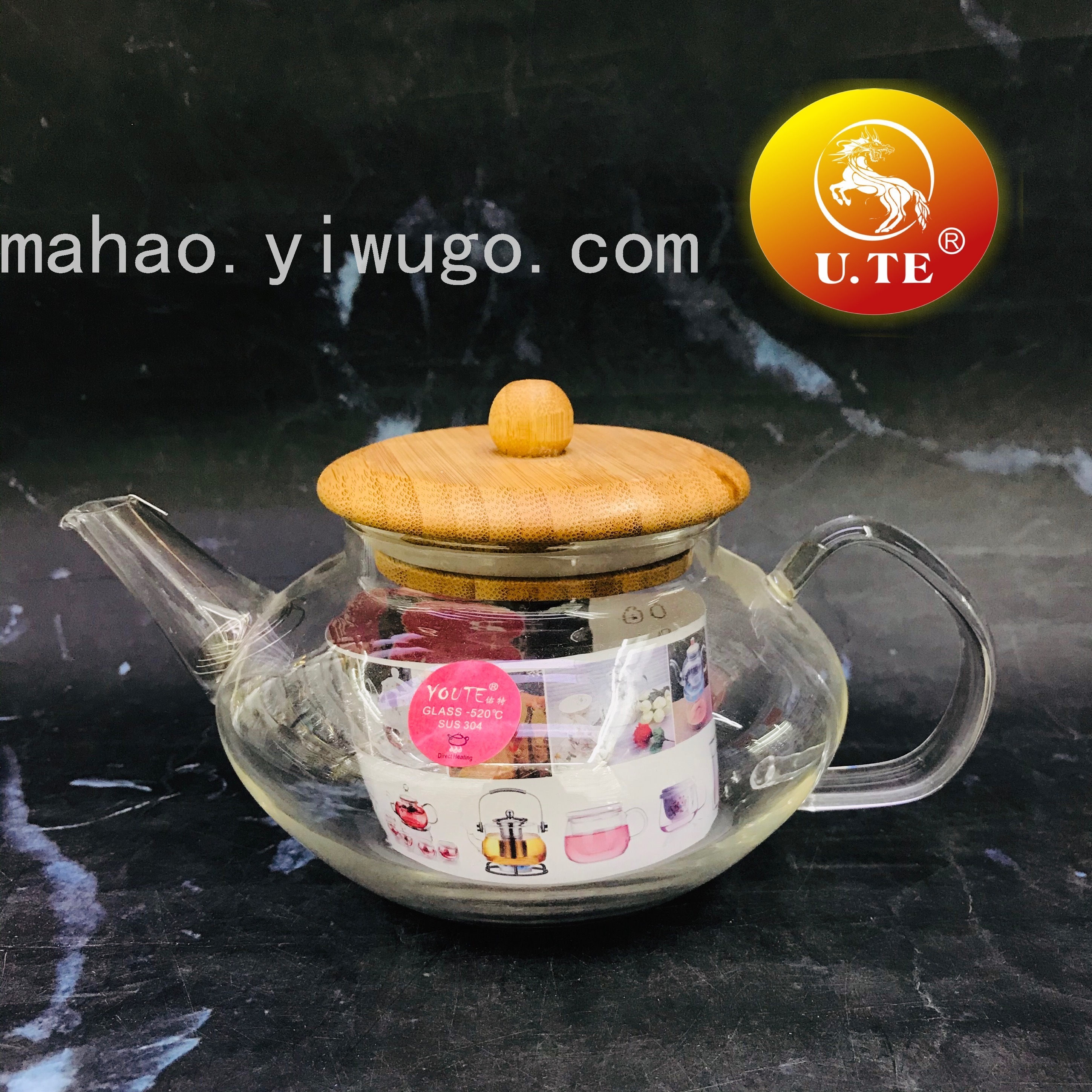 晶致木头盖直火壶家用耐热高硼硅玻璃茶壶过滤壶礼品咖啡壶