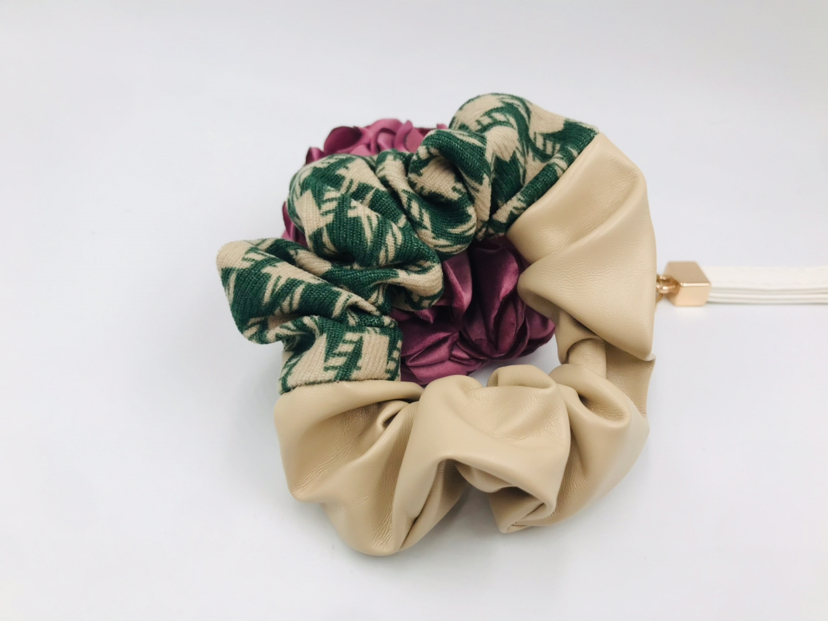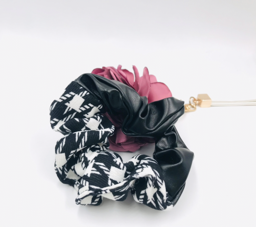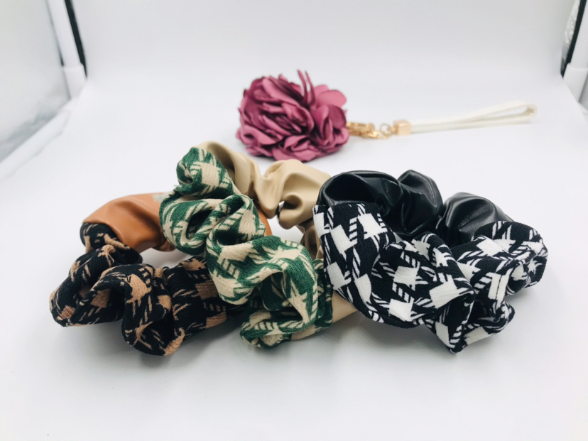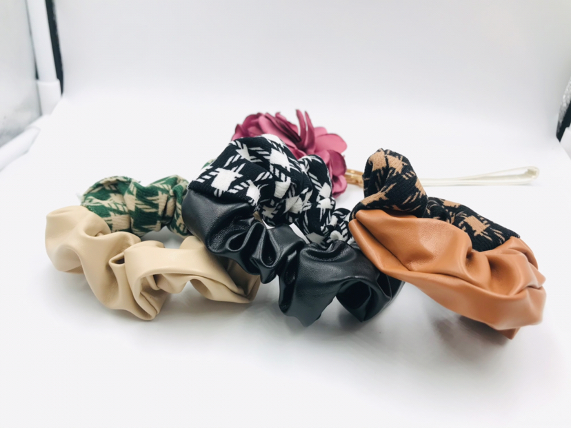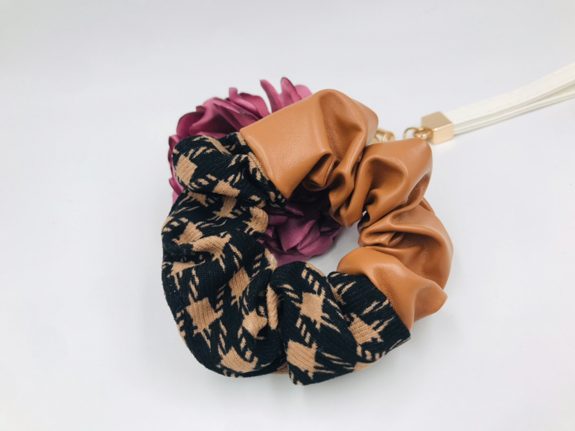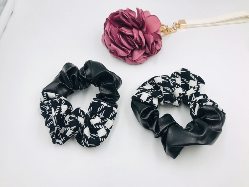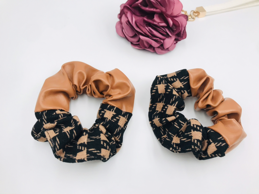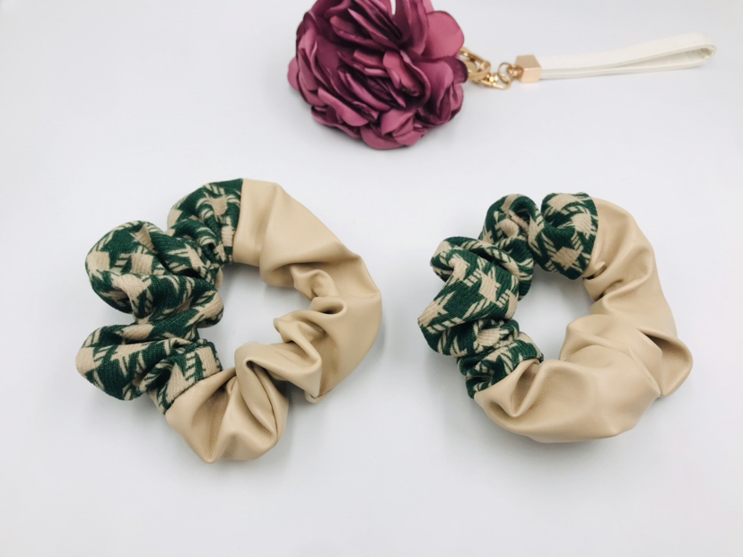 豹纹拼接皮质发圈时尚成人大肠发圈软皮布圈新款发绳发饰品