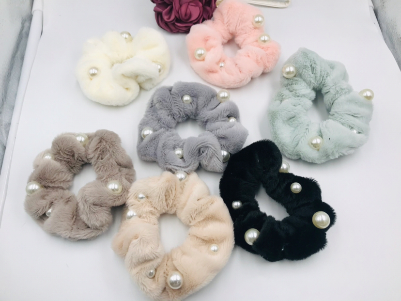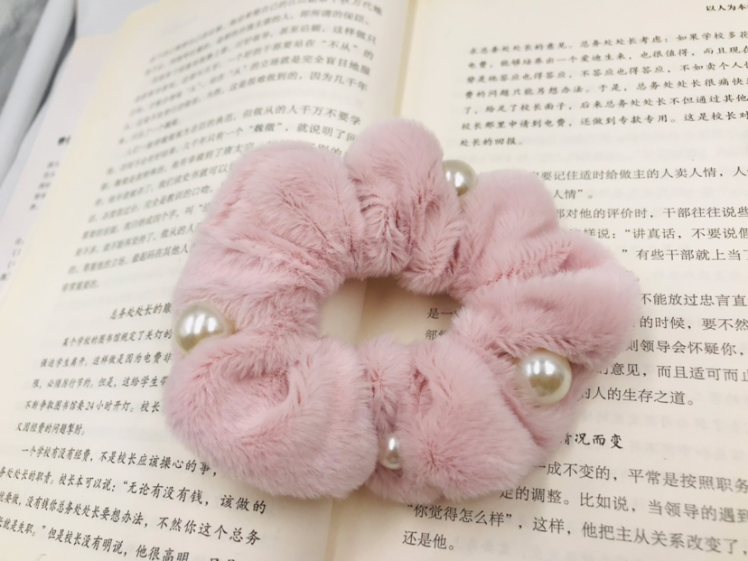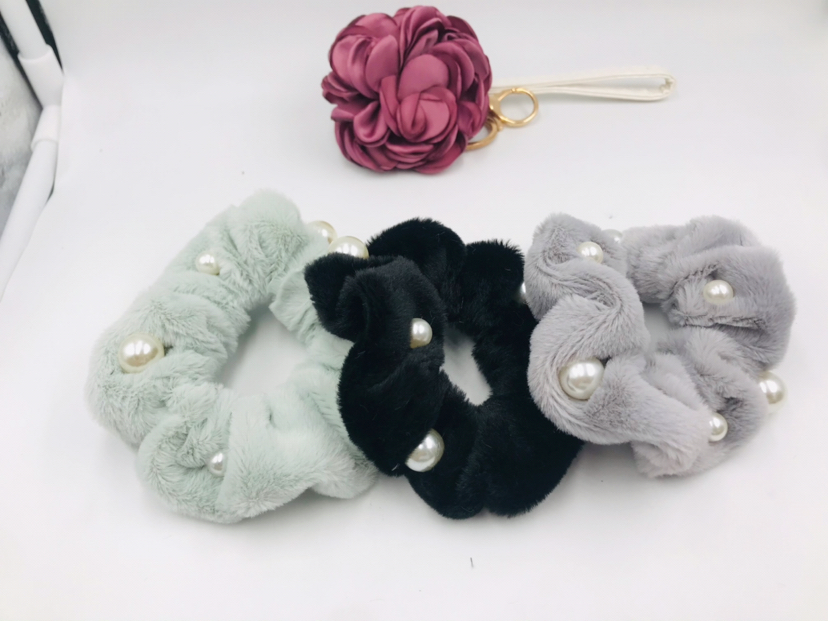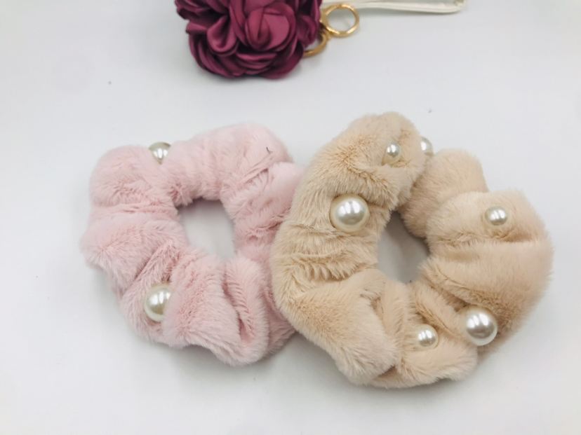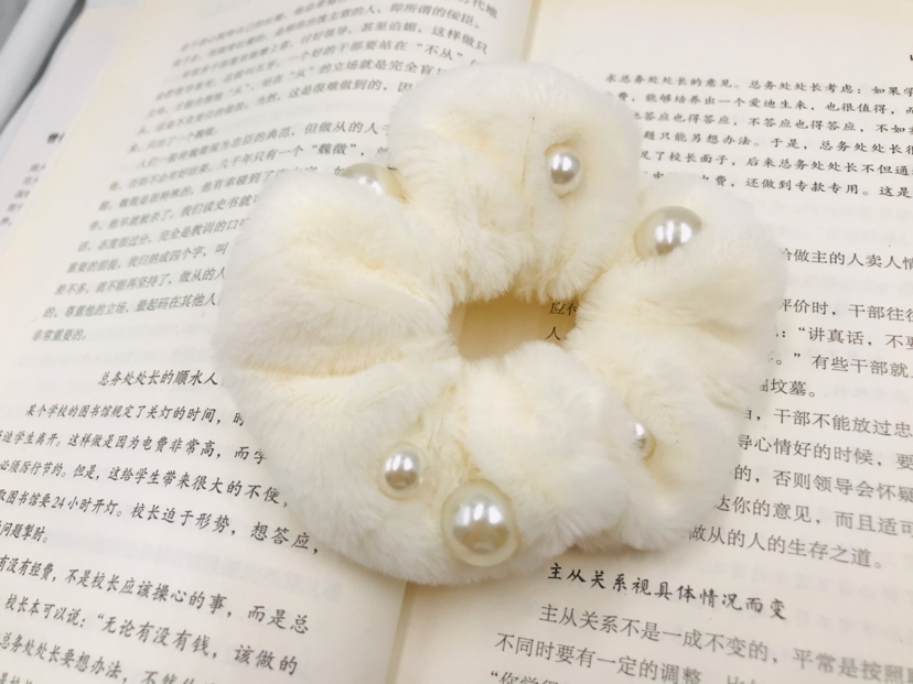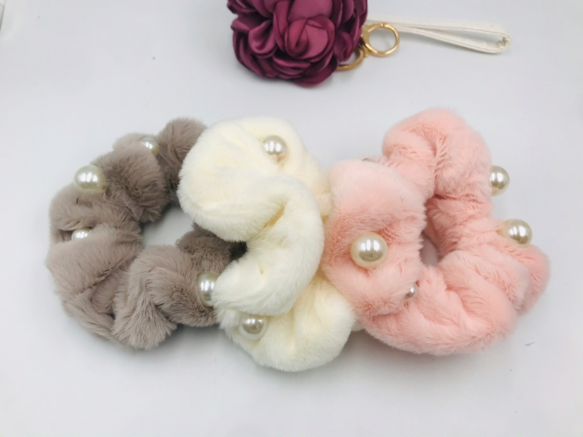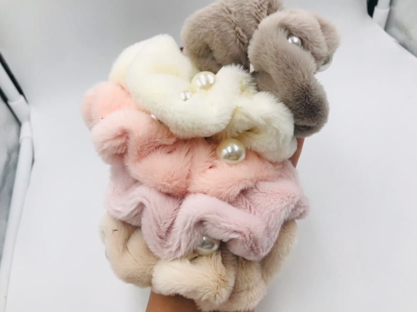 秋冬新款可爱仿兔毛绒发圈超软简约百搭发绳大肠圈头绳带珍珠