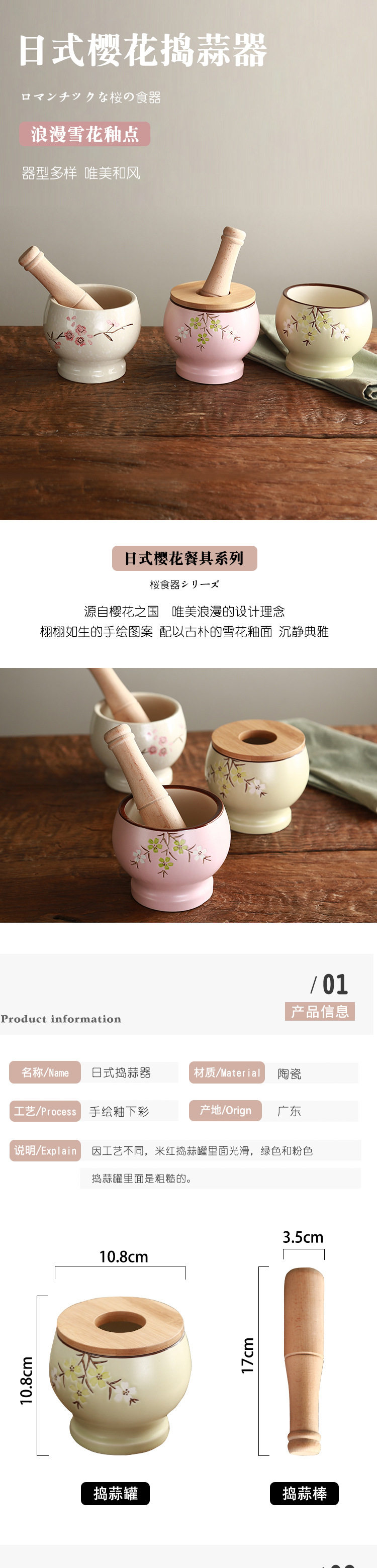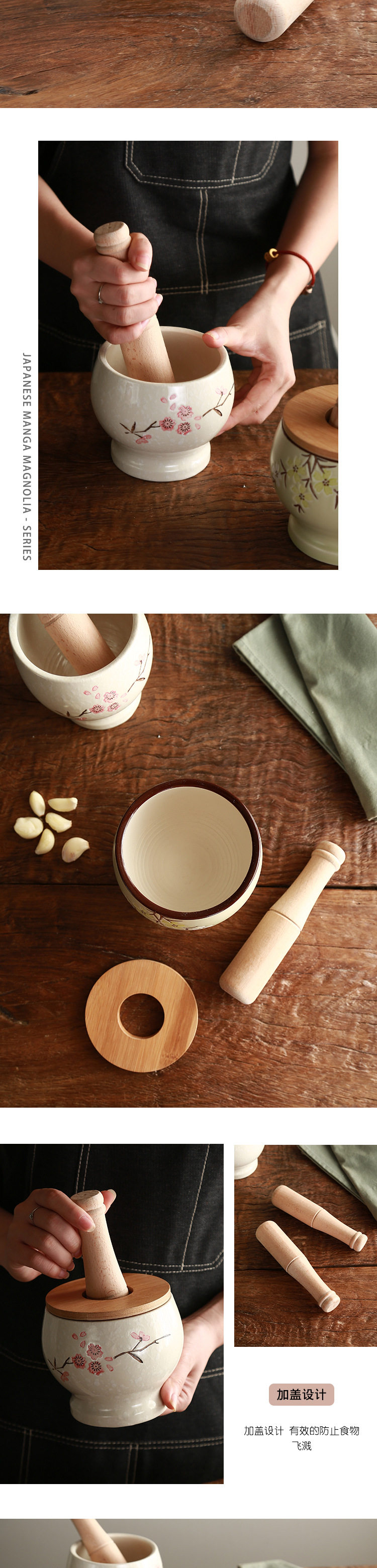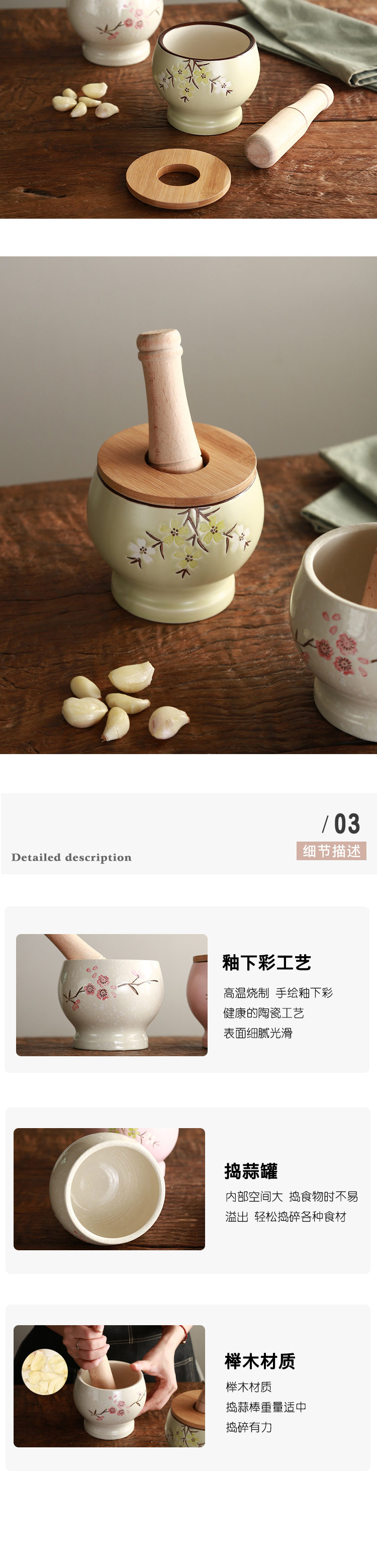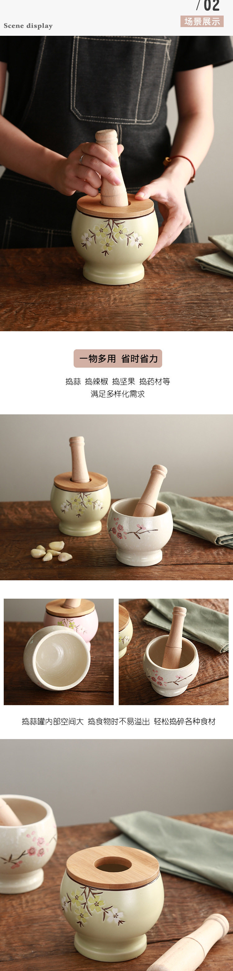 陶煲王陶瓷蒜臼子家用手动捣蒜器蒜蓉蒜泥器捣碎罐研磨捣药多功能