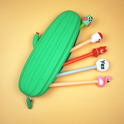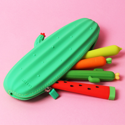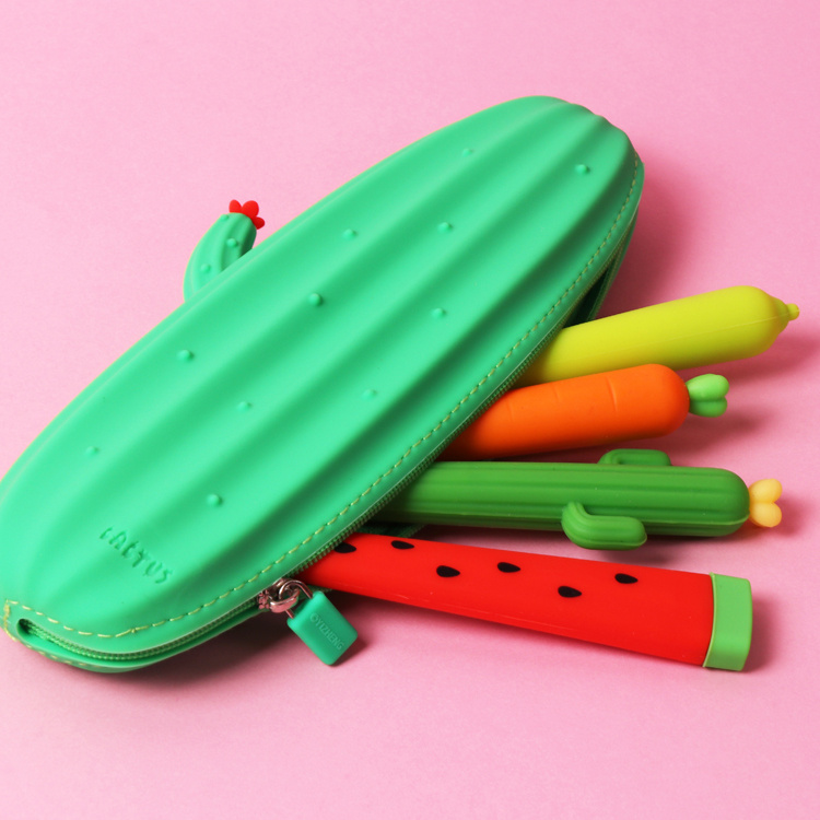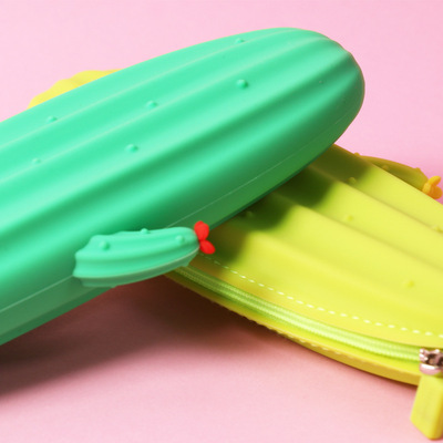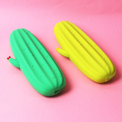 日用 文具 新款硅胶笔袋 文具盒清新卡通创意可爱仙人掌简约纯色
